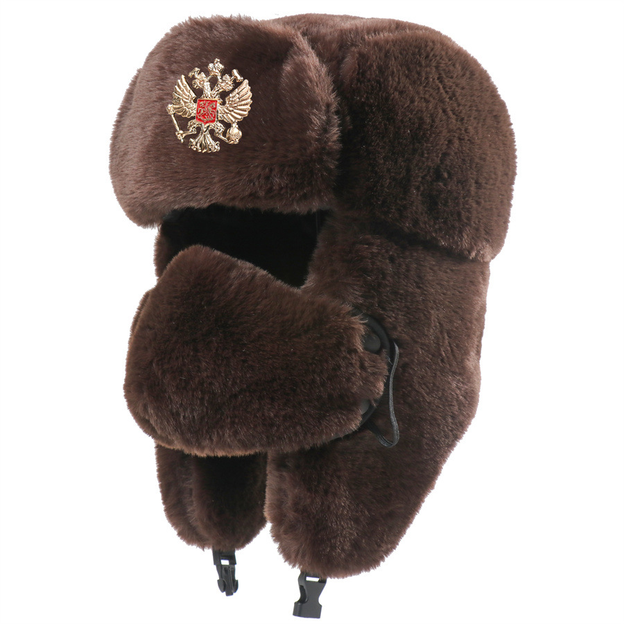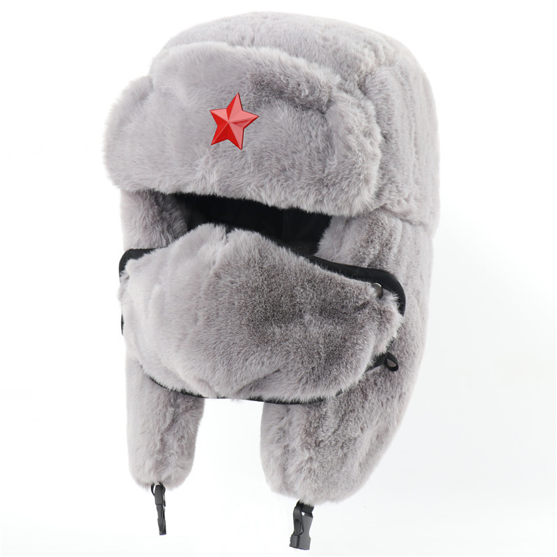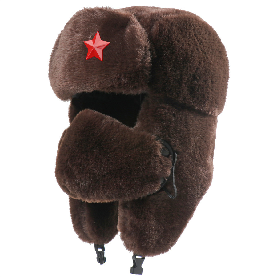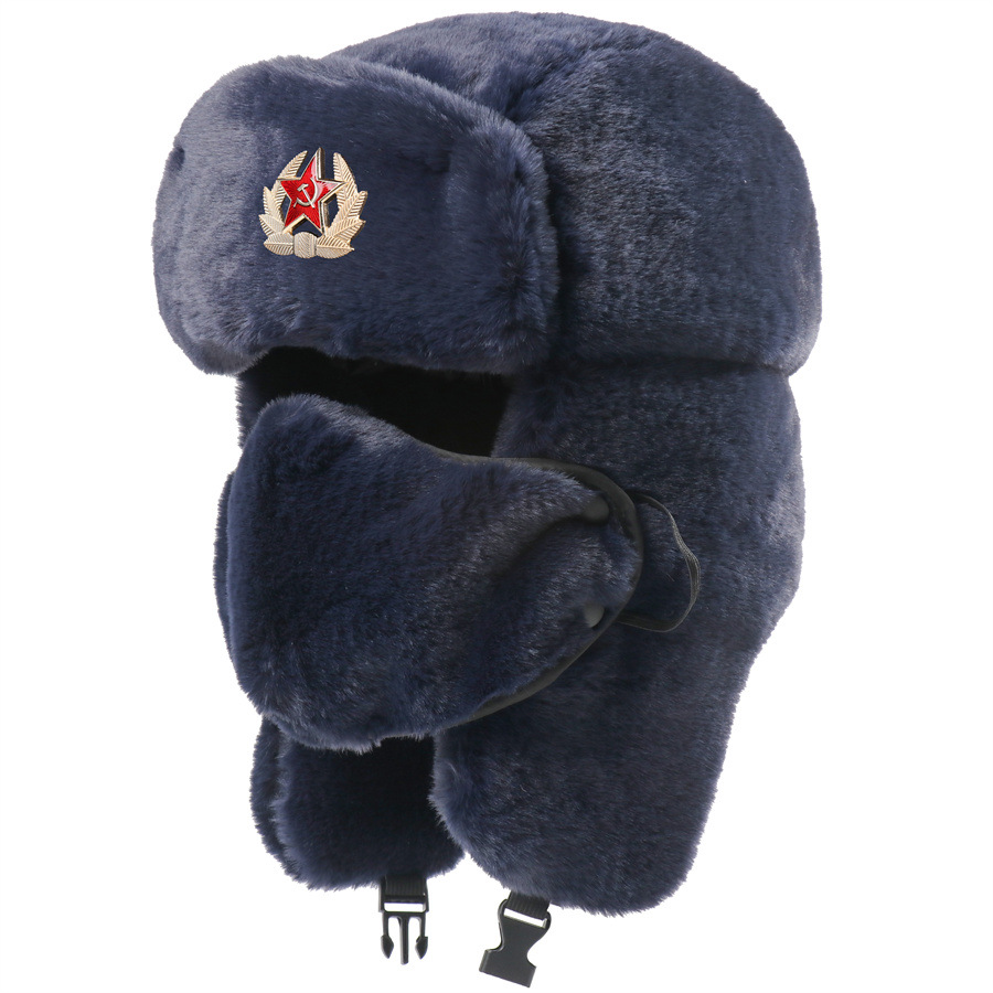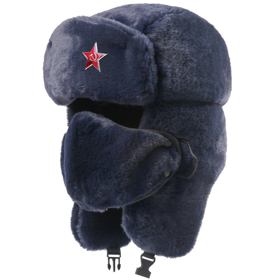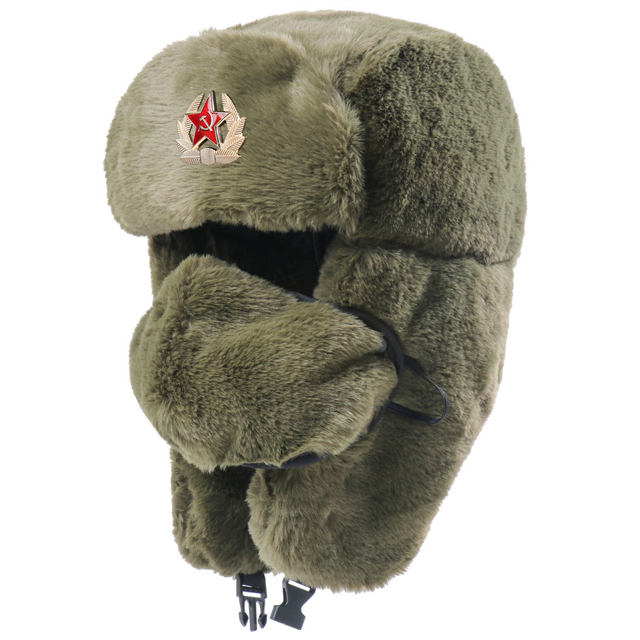 소련 배지 Lei Feng Hat 남성과 여성의 모조 토끼 모피 야외 모자 귀 보호대 러시아 전체 머리 따뜻한 모자 방한 동북 모자