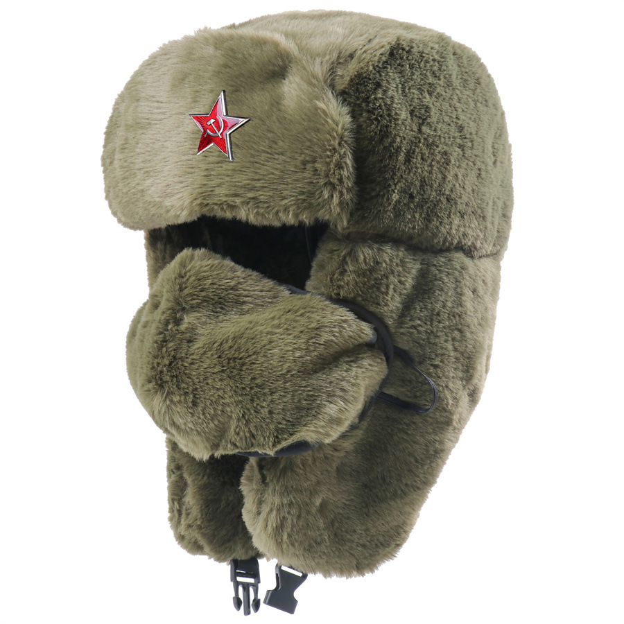 소련 배지 Lei Feng Hat 남성과 여성의 모조 토끼 모피 야외 모자 귀 보호대 러시아 전체 머리 따뜻한 모자 방한 동북 모자스토어 가기