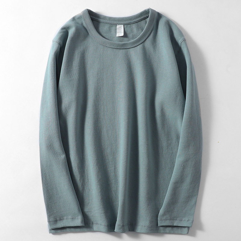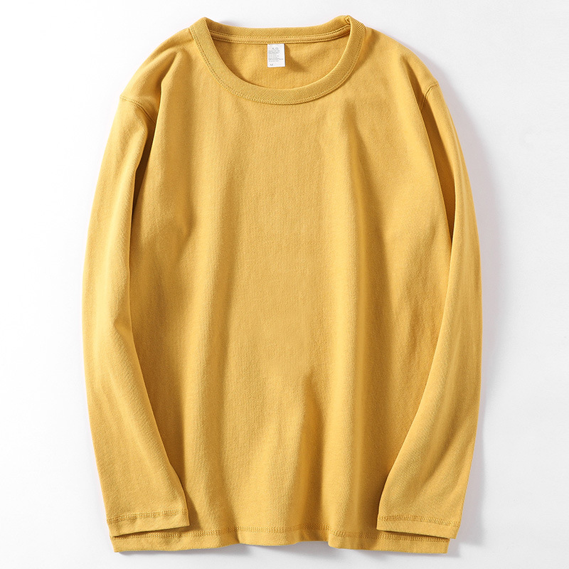 300g 무거운 긴팔 티셔츠 남성용 레트로 샌딩 코튼 봄과 여름 두꺼운베이스 셔츠 따뜻한 착용 단색 재킷 여성
