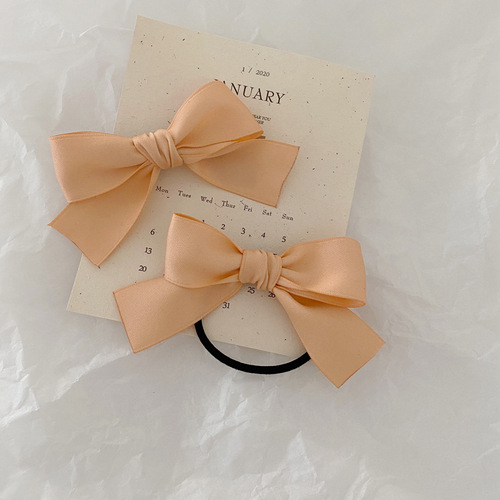 한국식 새틴 활 머리끈 머리핀 달콤한 모든 일치 리본 머리띠 부드러운 소녀 더블 포니테일 머리끈 앞머리 클립