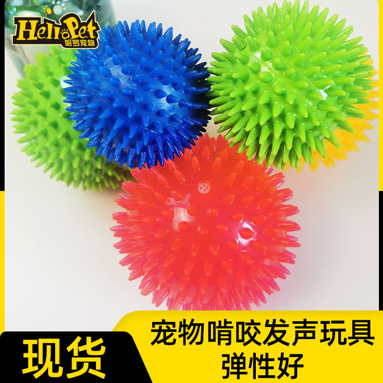 TPR 애완 동물 장난감 탄성 공 물린 방지 사운드 개 크로스 보더 버 성게 개 장난감 공 도매스토어 가기