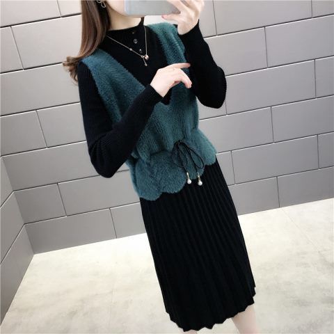 2023 가을과 겨울 새로운 작은 스타일 니트 원피스 투피스 니트 원피스 + 조끼 재고 도매