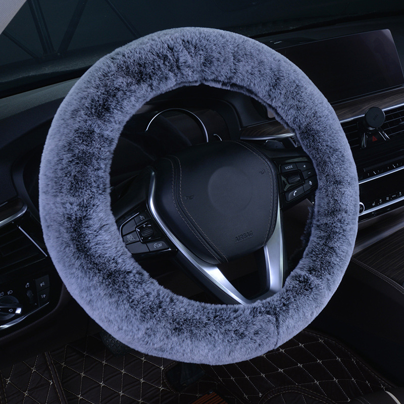 이중 색상 플러시 스티어링 휠 커버 토끼털 퇴색 방지 커버 겨울용 두꺼운 스티어링 휠 세트 다색 커버 차량용스토어 가기
