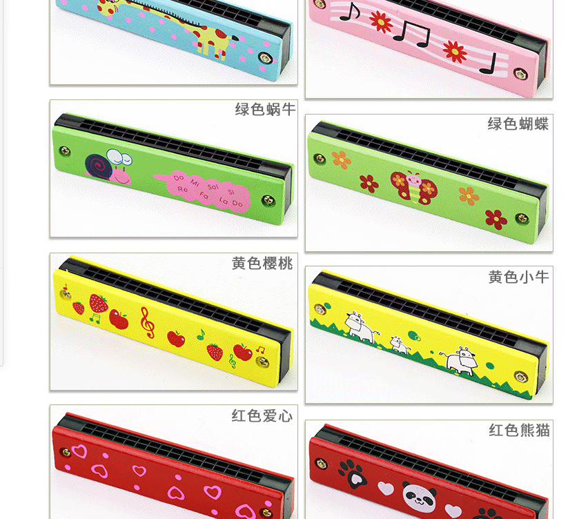 모조 하모니카 악기 소년 소녀용 나무 16구 이중열 불어넣을 수 있는 나무 장난감 도매 음악 교육용스토어 가기