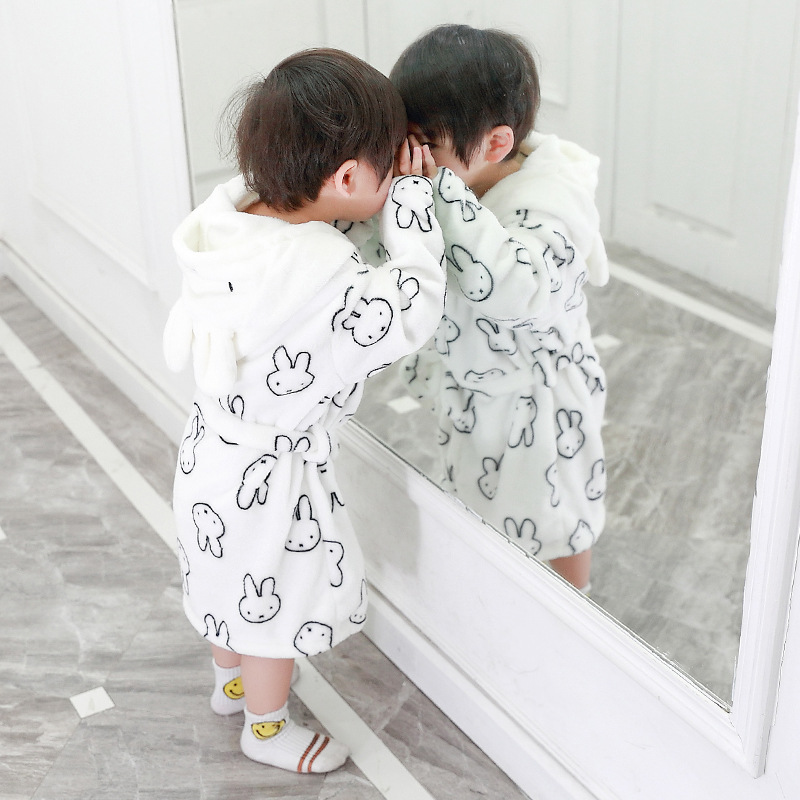 어린이 가정복 가을 겨울 2025 아기 겨울 만화 토끼 플란넬 목욕 가운 소녀 귀여운 에어컨 옷스토어 가기