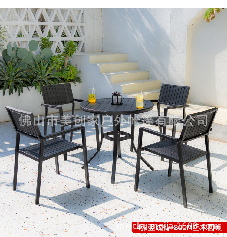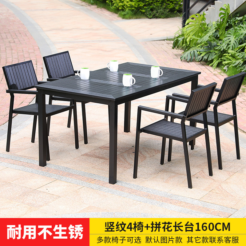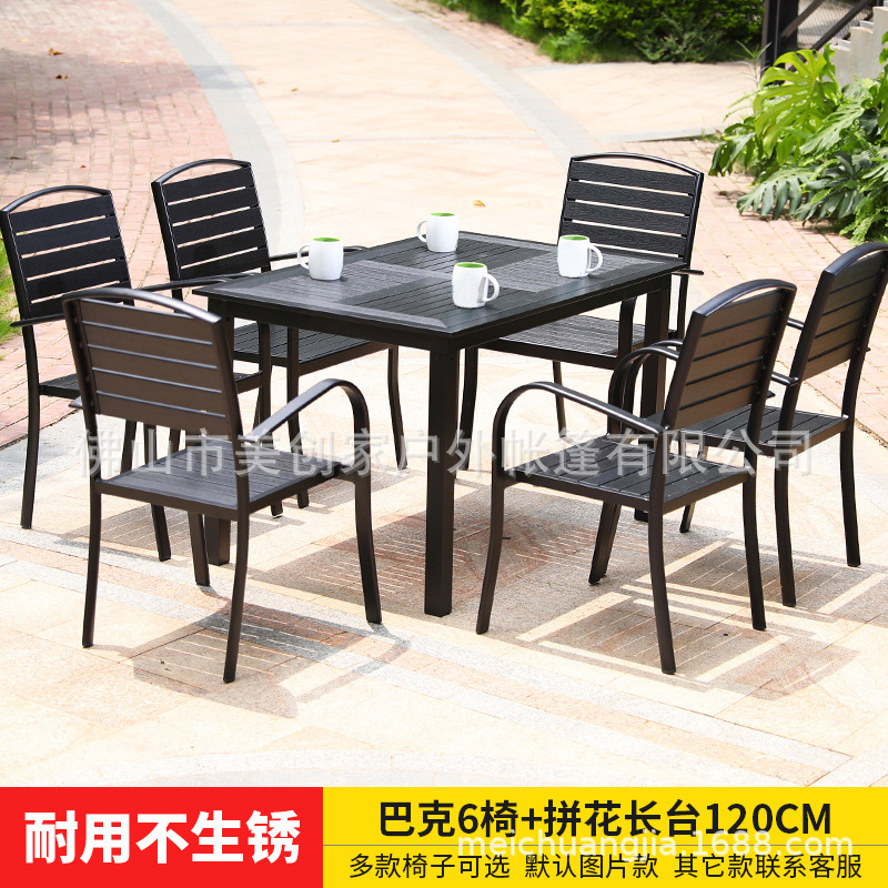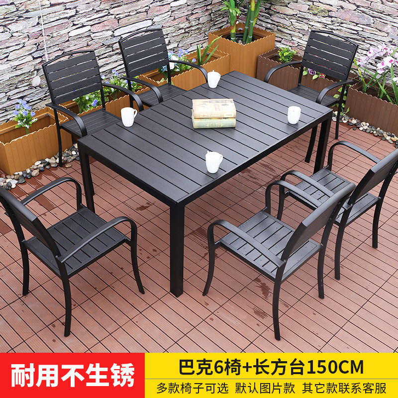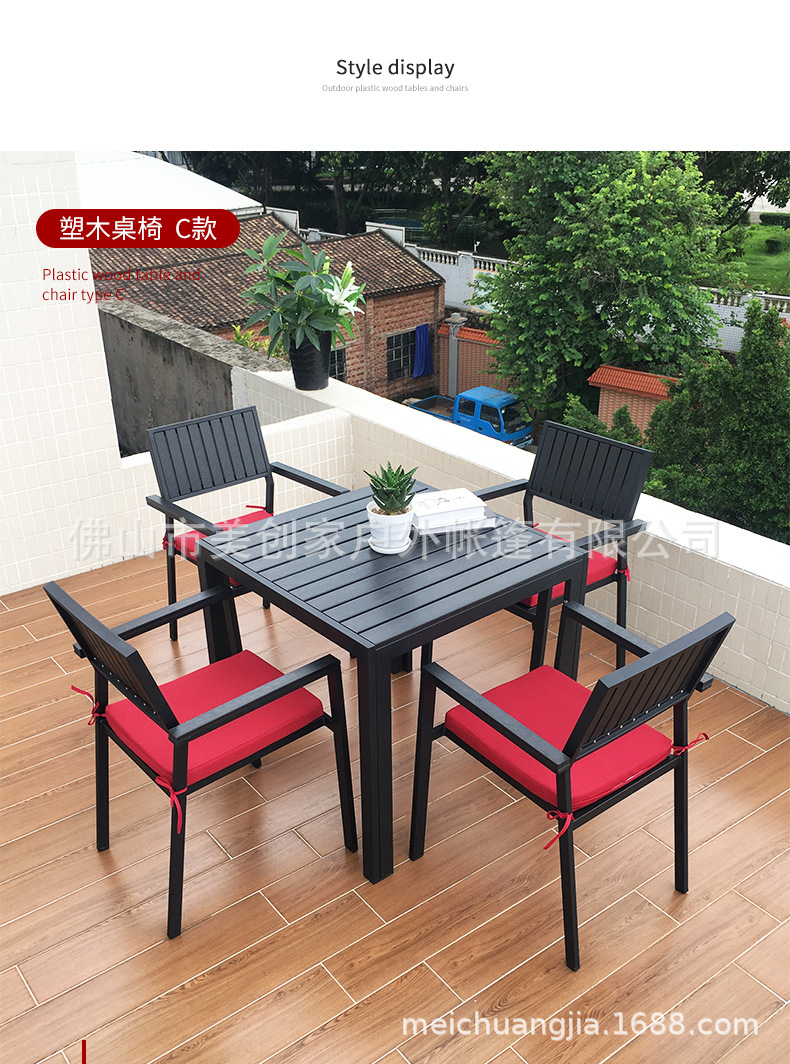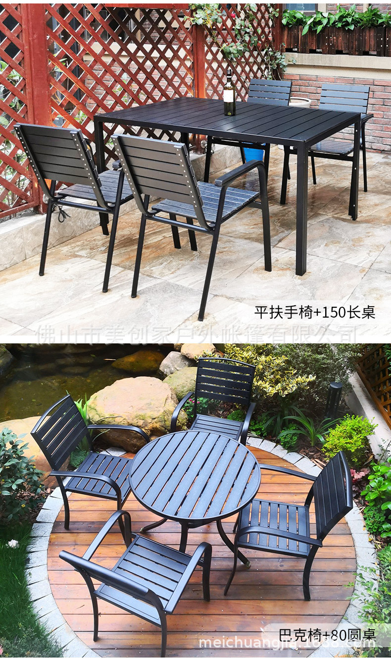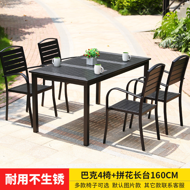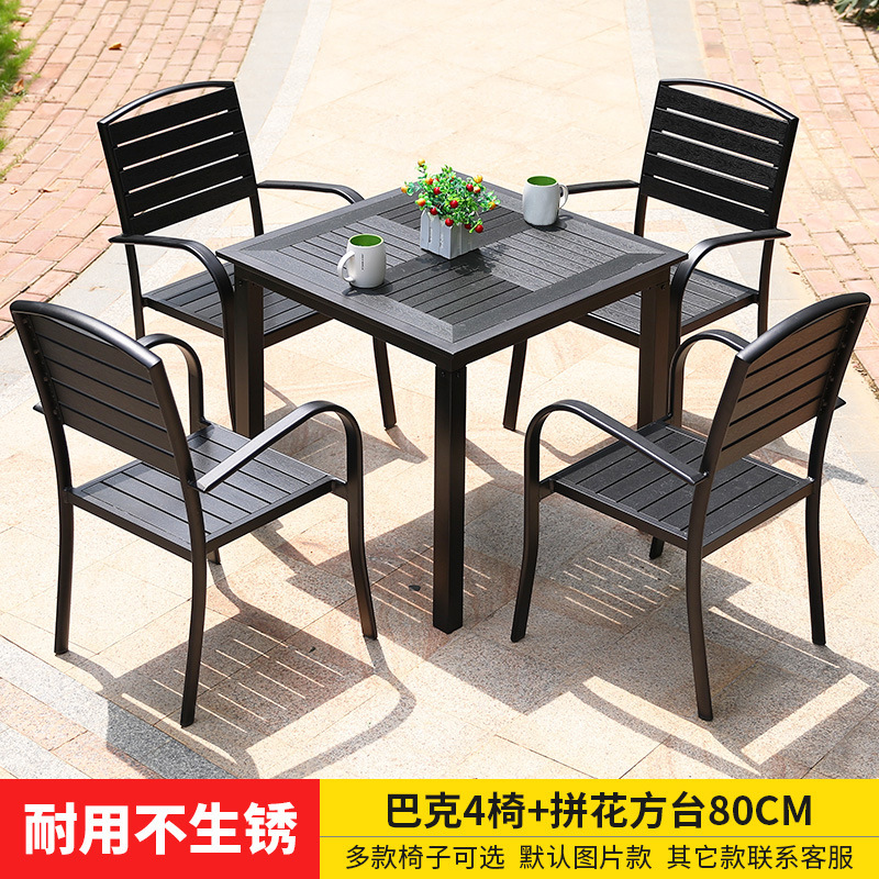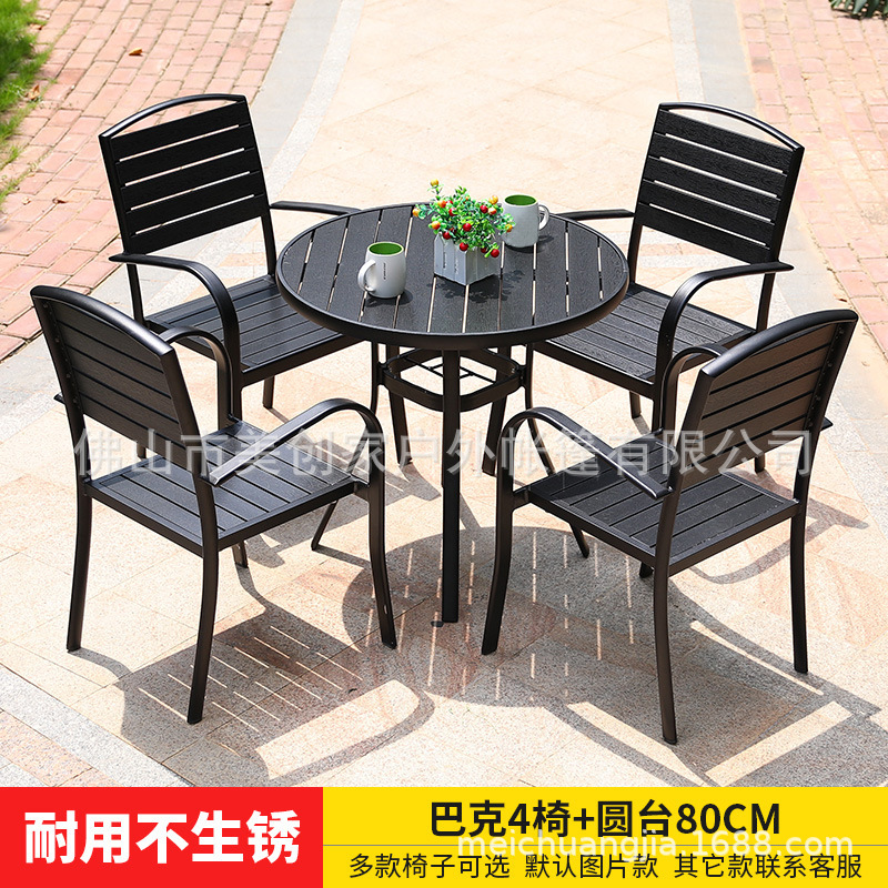야외 플라스틱 나무 테이블과 의자 안뜰 부식 방지 목재 야외 레저 식탁 정원 야외 발코니 카페 테이블과 의자 조합스토어 가기
