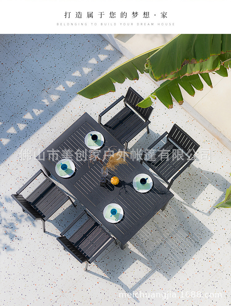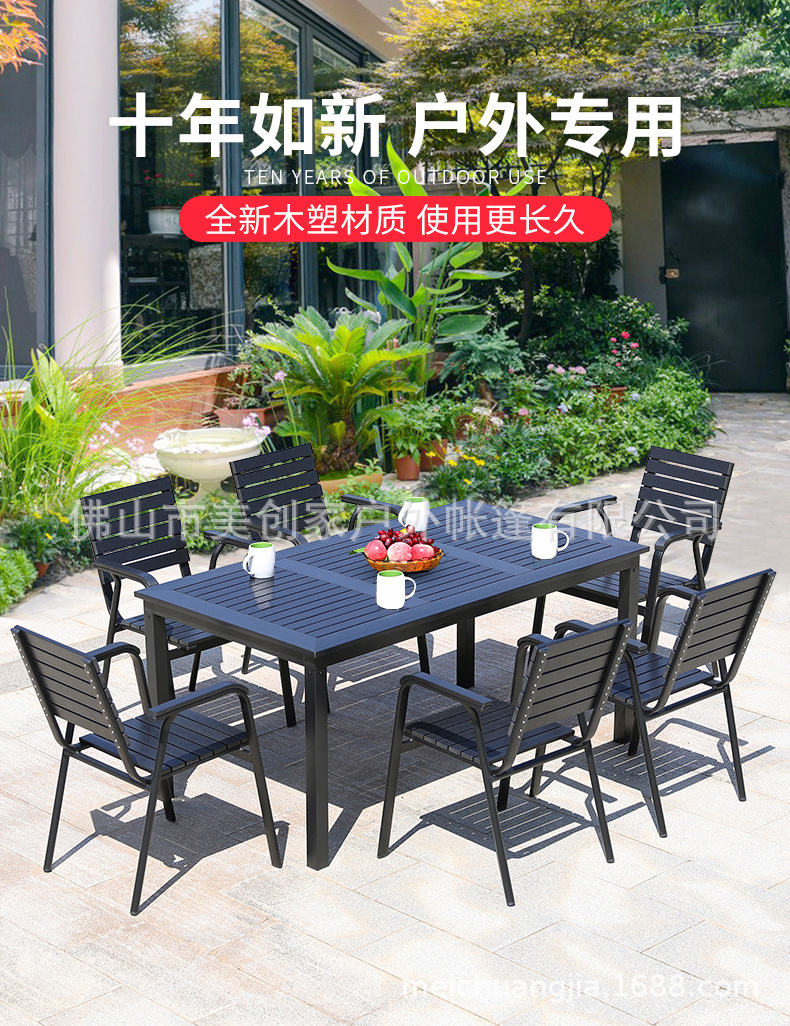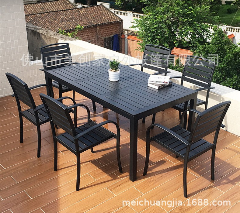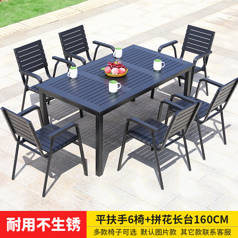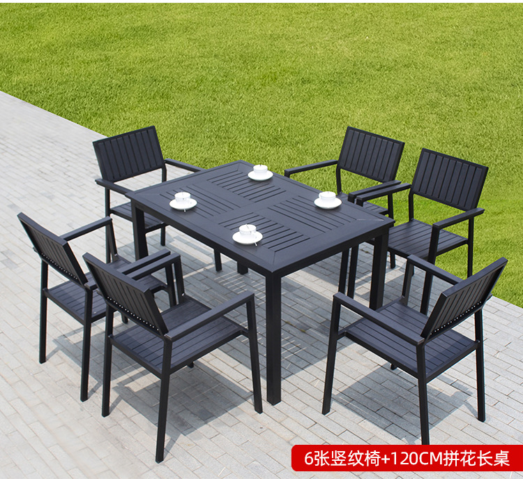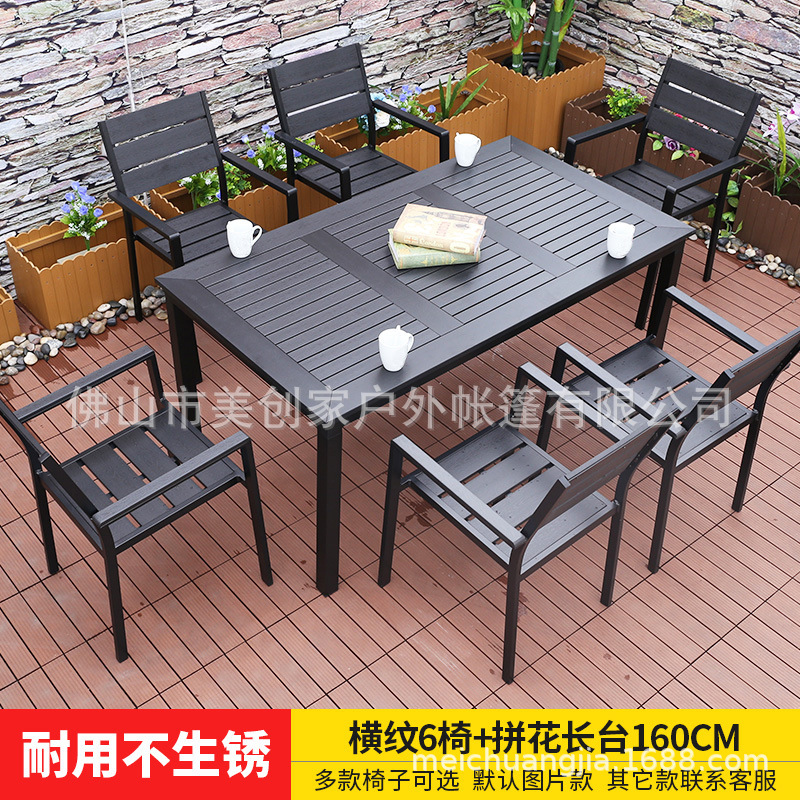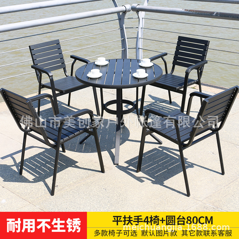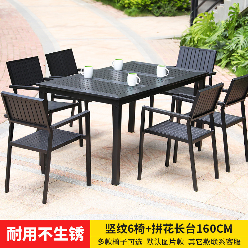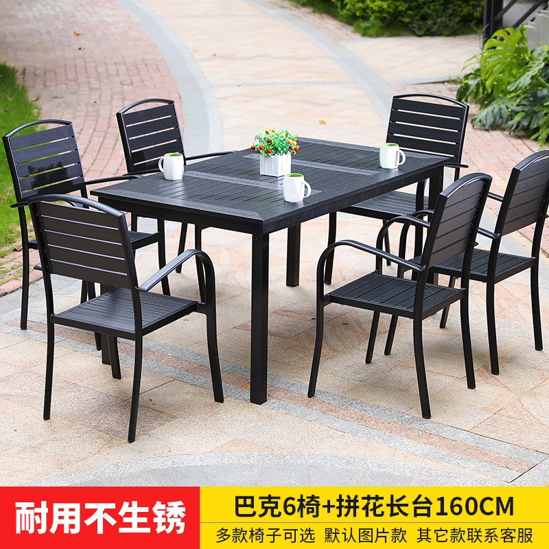 야외 플라스틱 나무 테이블과 의자 안뜰 부식 방지 목재 야외 레저 식탁 정원 야외 발코니 카페 테이블과 의자 조합스토어 가기
