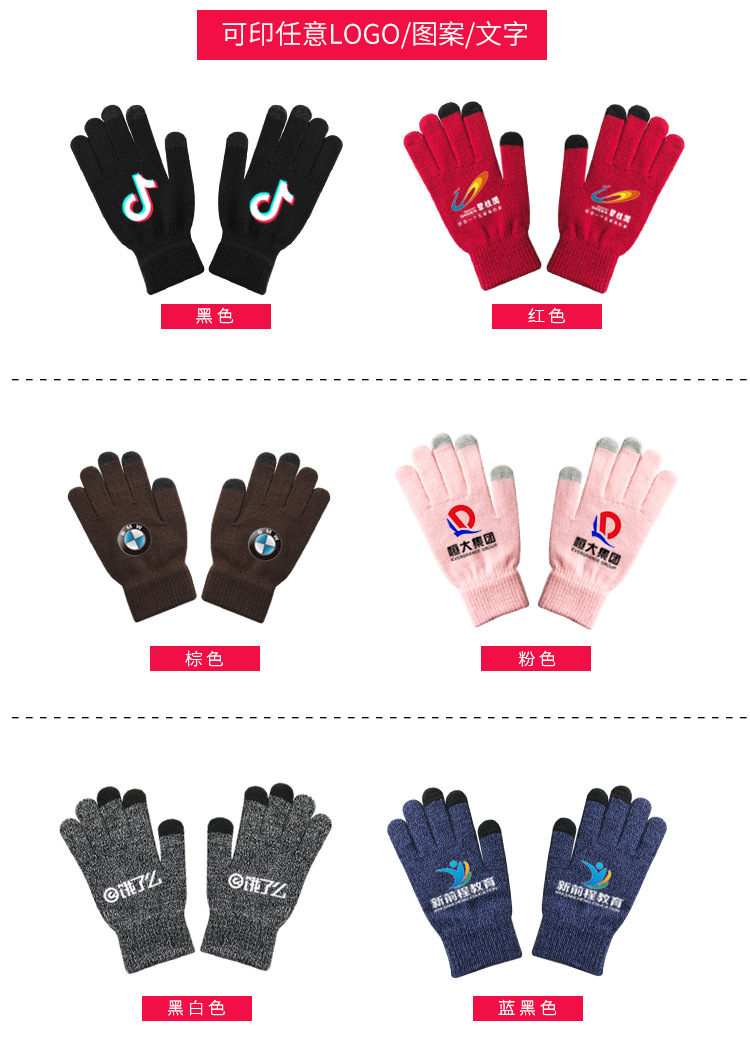 남성과 여성을 위한 맞춤형 로고와 인쇄된 텍스트 패턴으로 제작된 겨울 니트 터치 스크린 장갑, 따뜻하고 두껍고 벨벳 크로스 보더 스타일스토어 가기