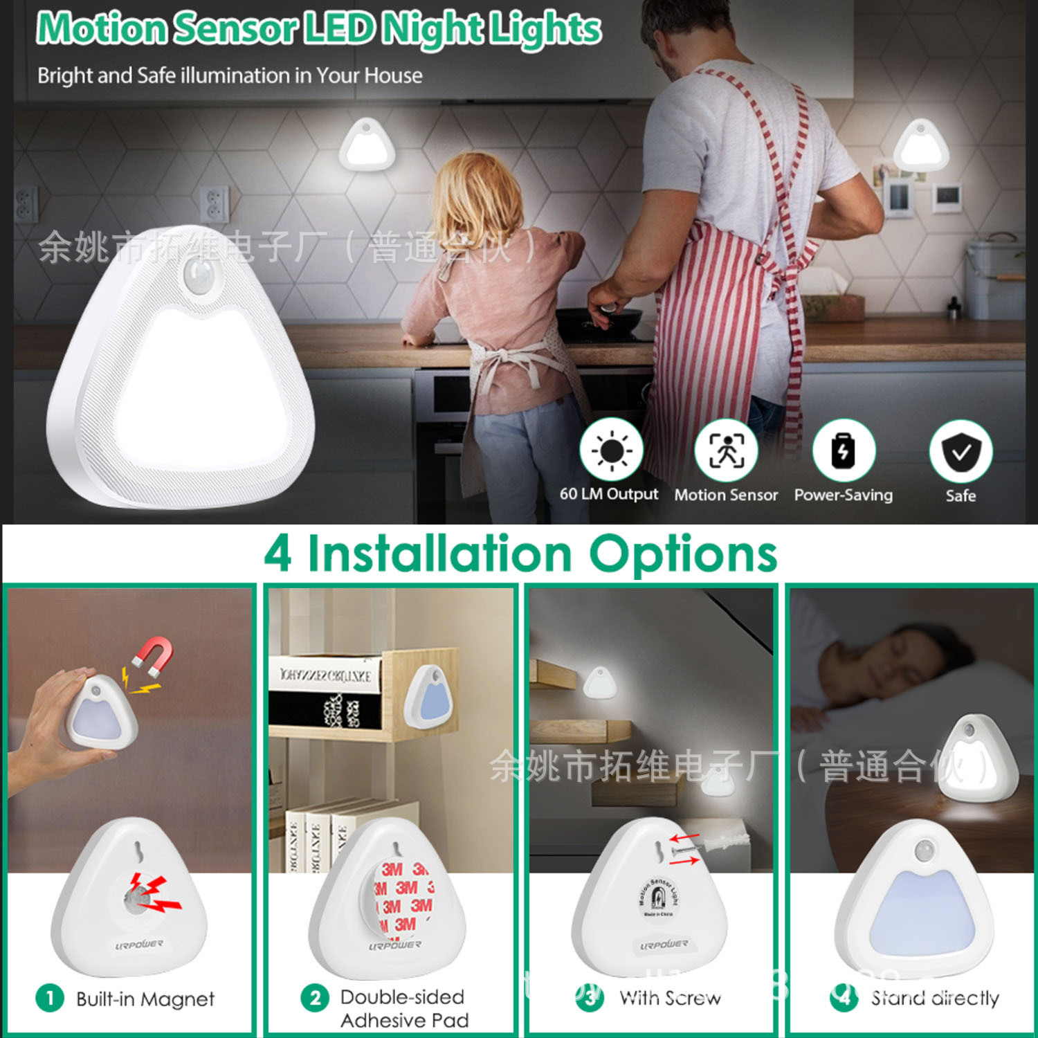 三角形人体感应小夜灯,柔美光线,一步即明。