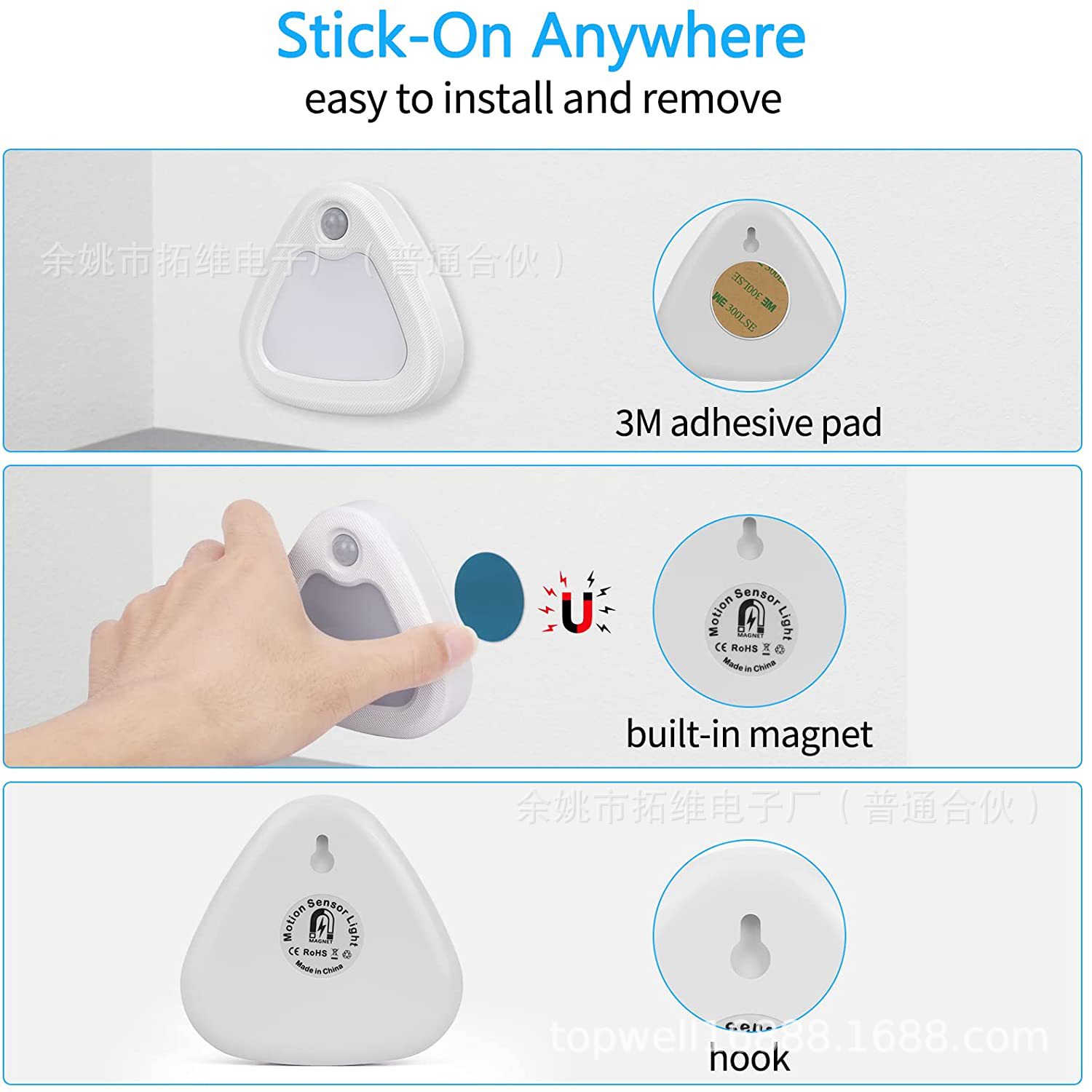【品名】:三角形人体感应小夜灯