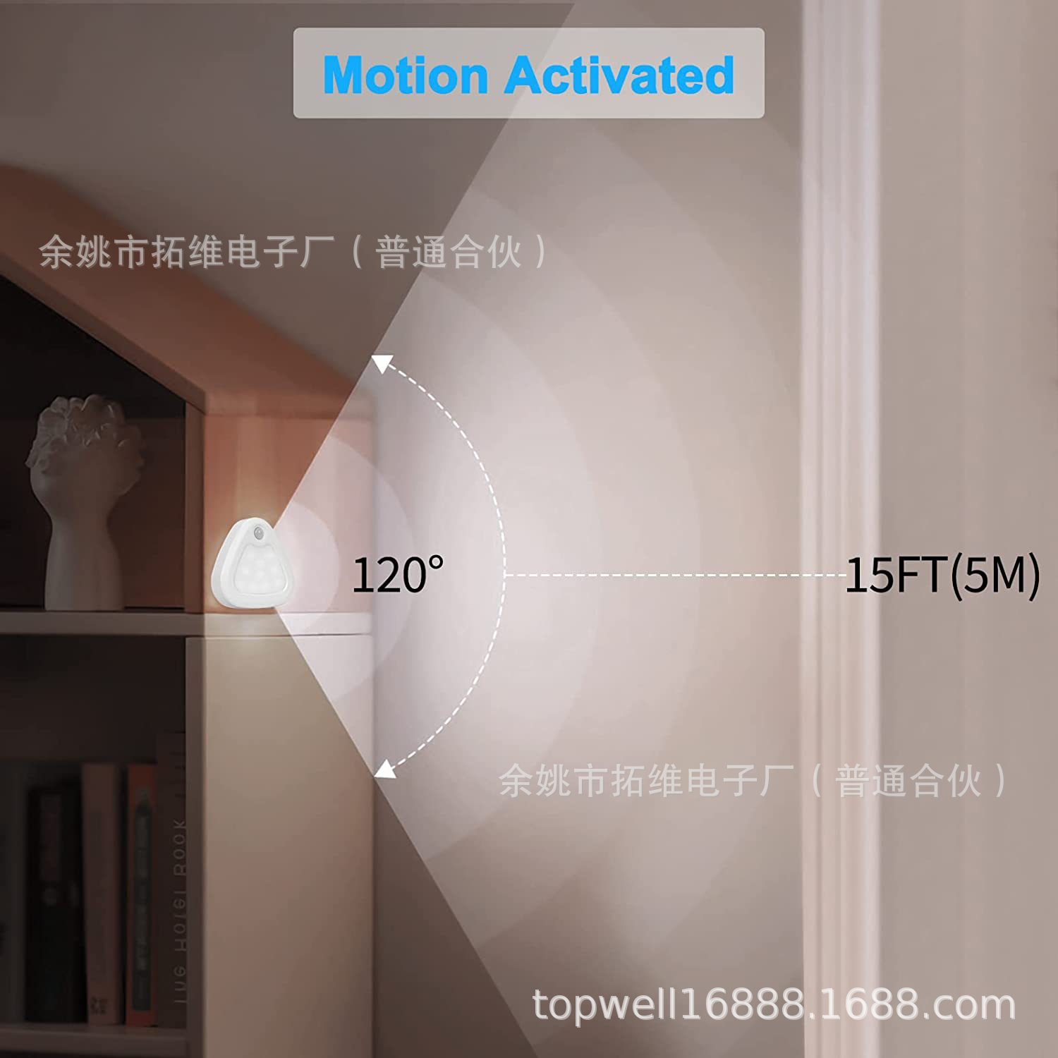 【感应距离】:0-5米,感应角度120°