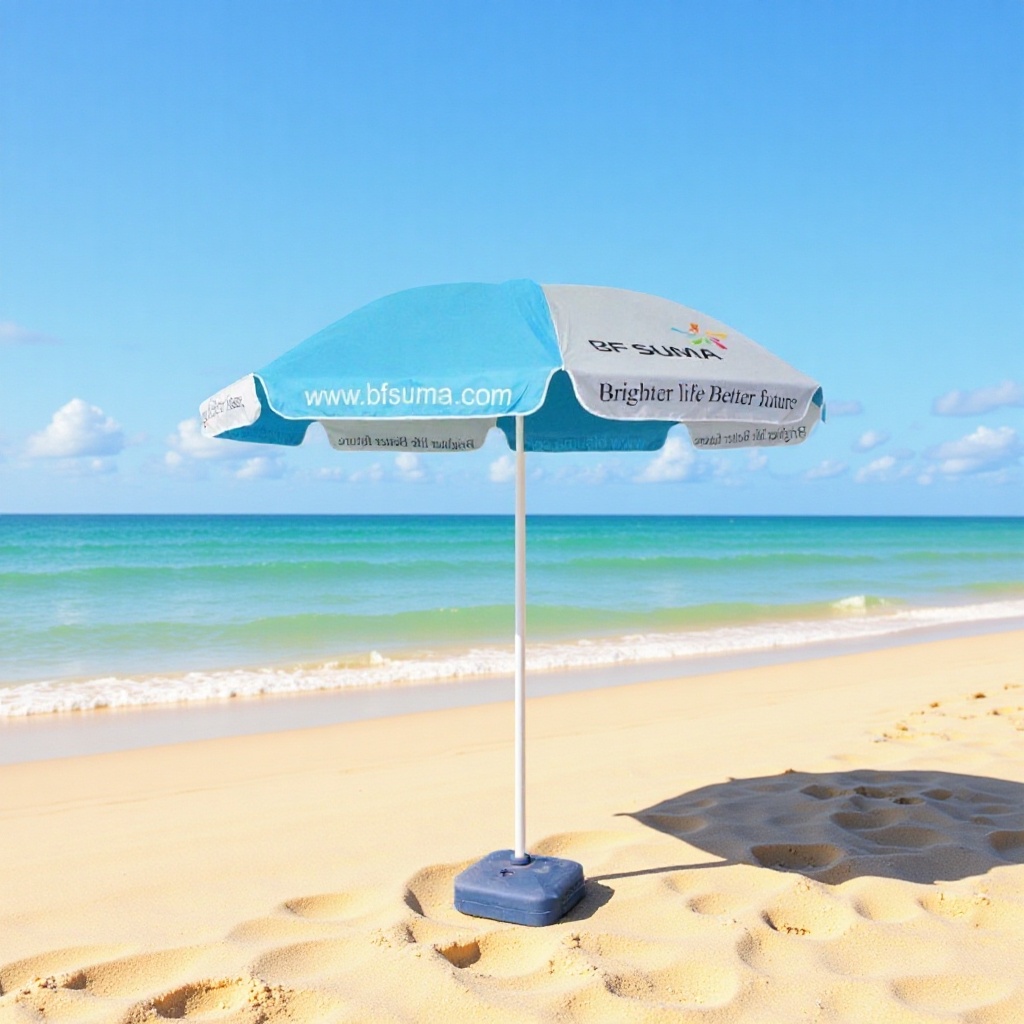 야외용 태양 우산 48inch 광고용 옥스포드 천 차양 해변 우산 흰색 페인트칠 철제 프레임 페인트칠 방수 및 자외선 차단 우산