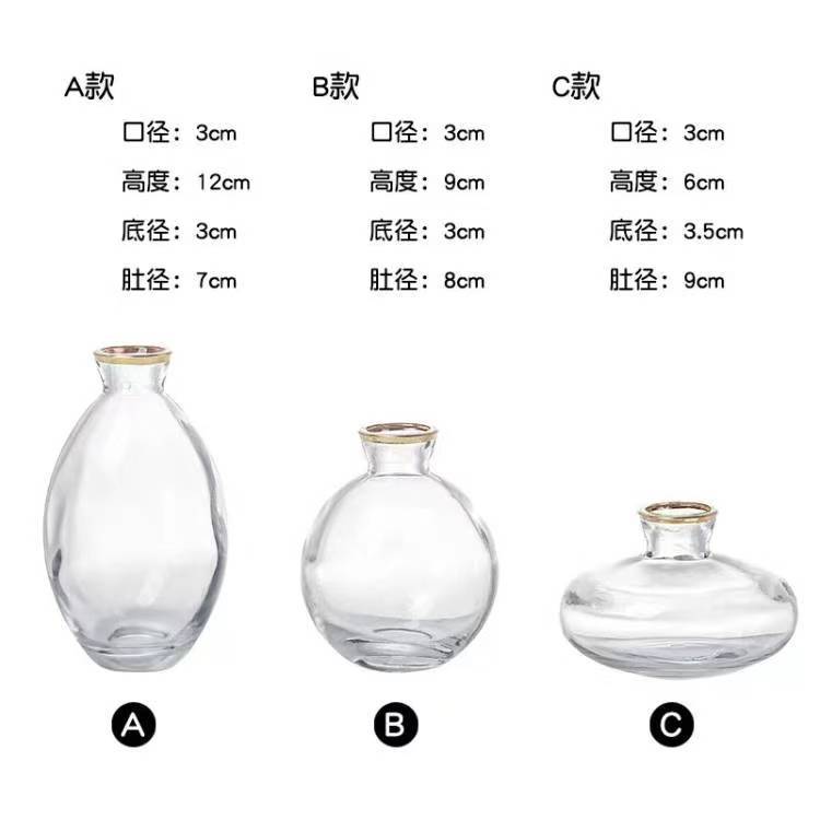 북유럽 색상 골드 투명 미니 유리 꽃병 물 높이기 작은 꽃 세트 창조적 인 간단한 식탁 꽃 장식품