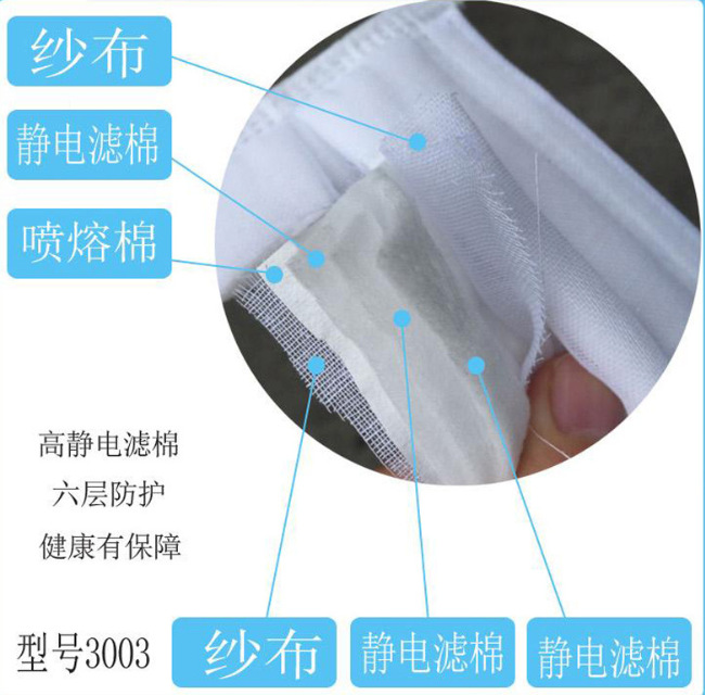 재고 Baoweikang 3003 거즈 마스크 통기성 면 두꺼운 흰색