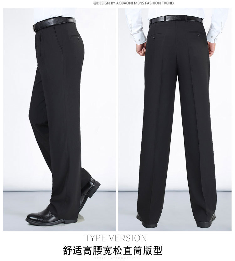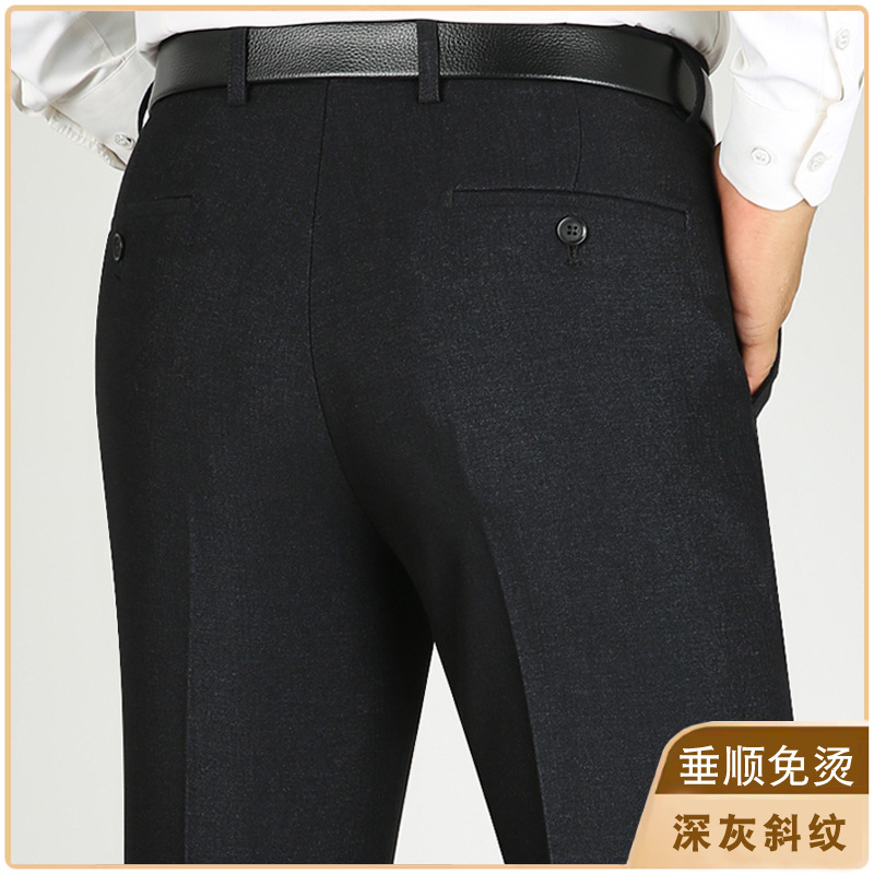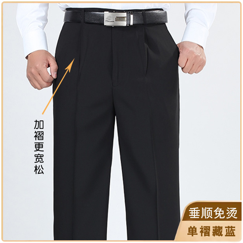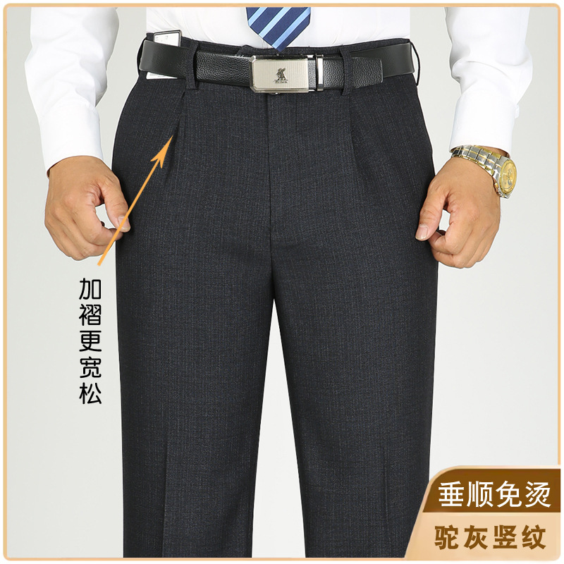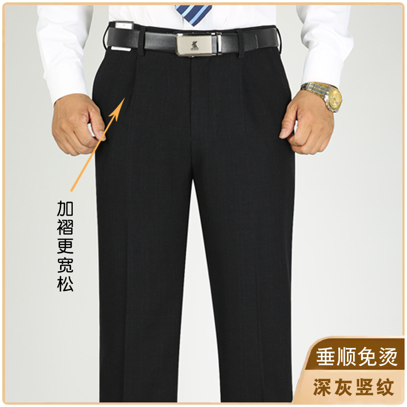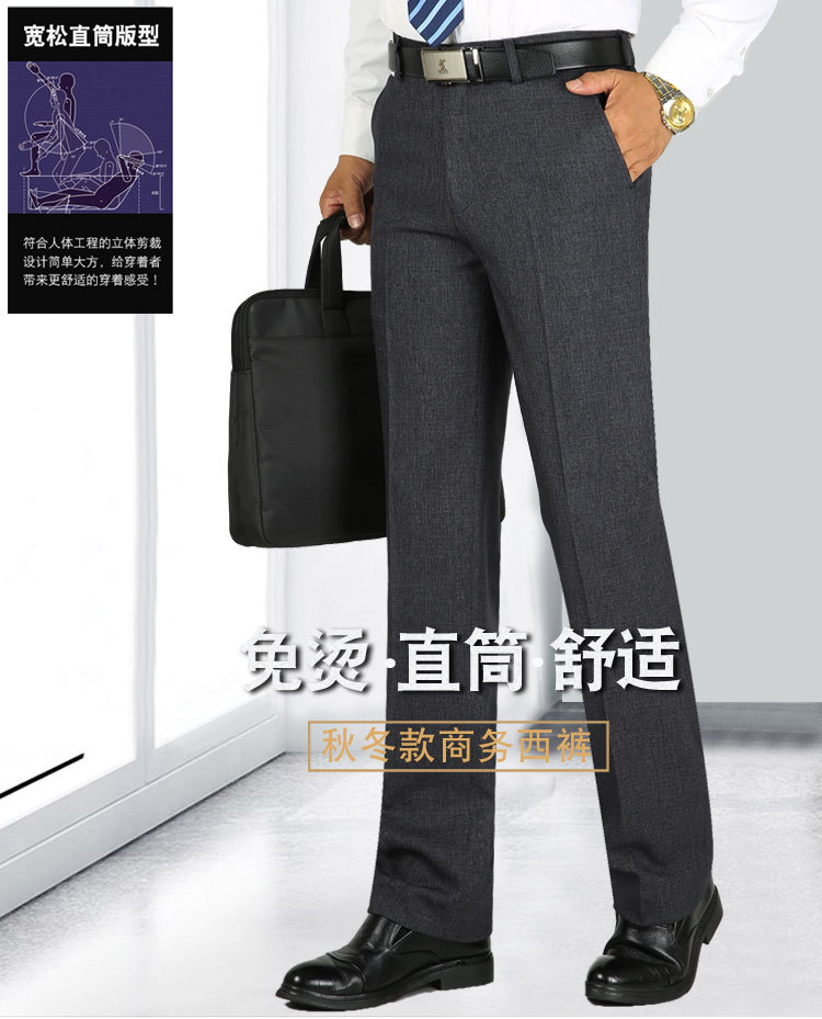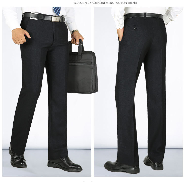 Huangjing Red Eagle 가을, 겨울 비즈니스 바지 남성 두꺼운 캐주얼 정장 바지 하이 웨이스트 중년 느슨한 스트레이트 바지스토어 가기
