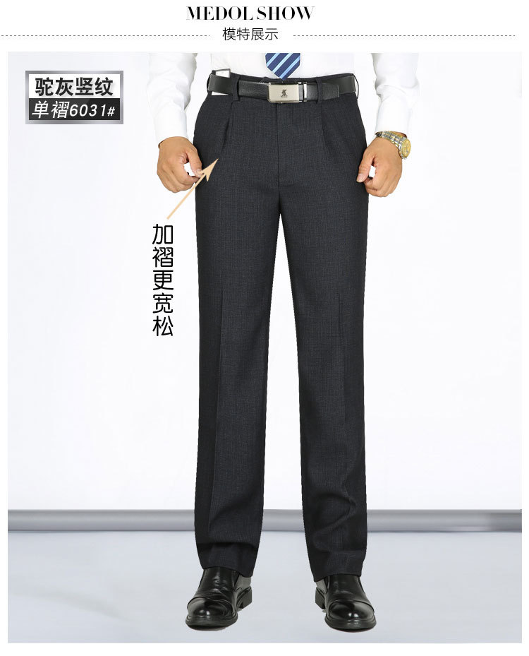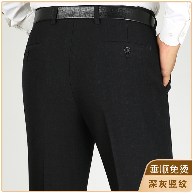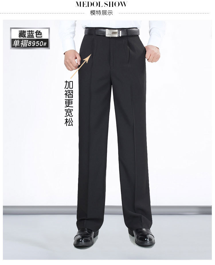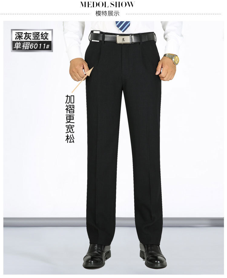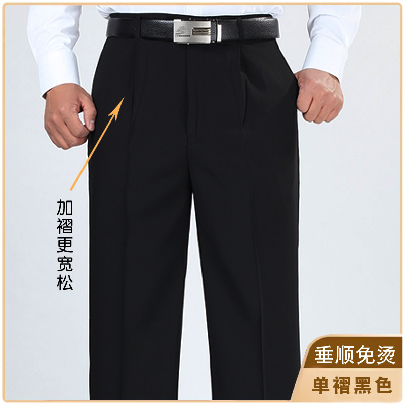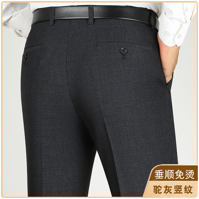 Huangjing Red Eagle 가을, 겨울 비즈니스 바지 남성 두꺼운 캐주얼 정장 바지 하이 웨이스트 중년 느슨한 스트레이트 바지스토어 가기