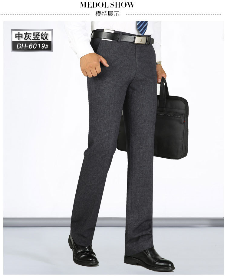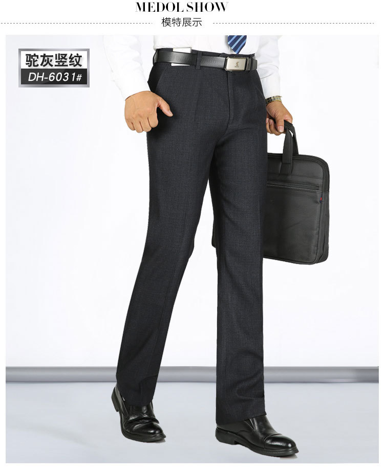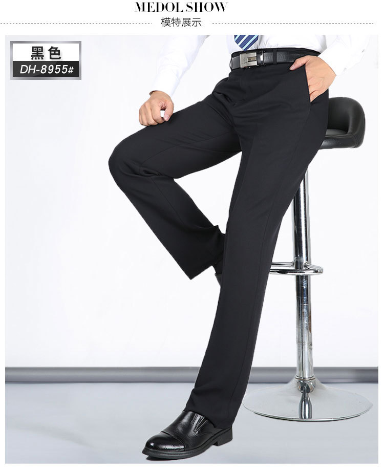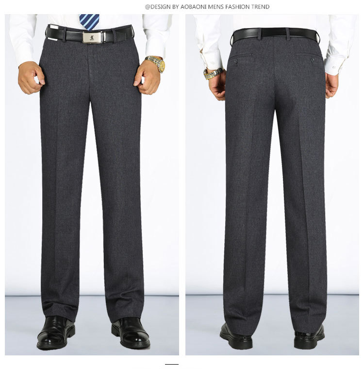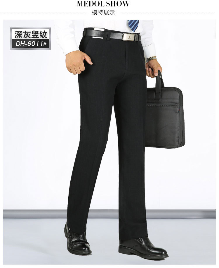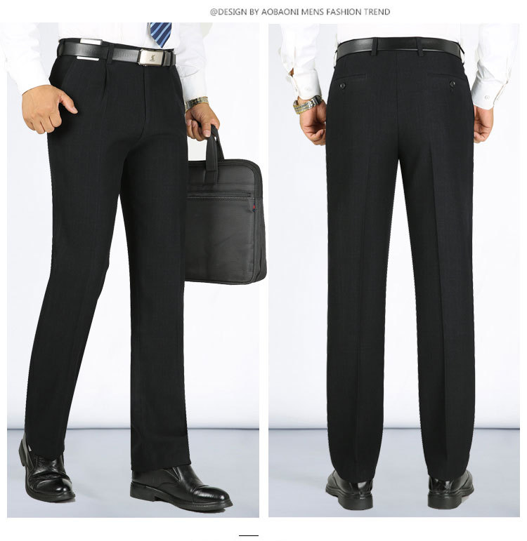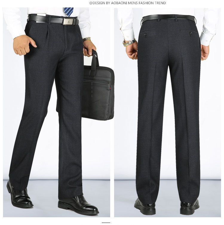 Huangjing Red Eagle 가을, 겨울 비즈니스 바지 남성 두꺼운 캐주얼 정장 바지 하이 웨이스트 중년 느슨한 스트레이트 바지스토어 가기