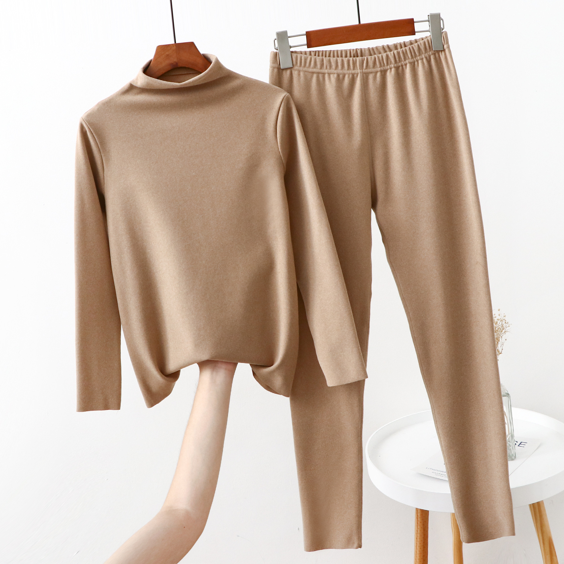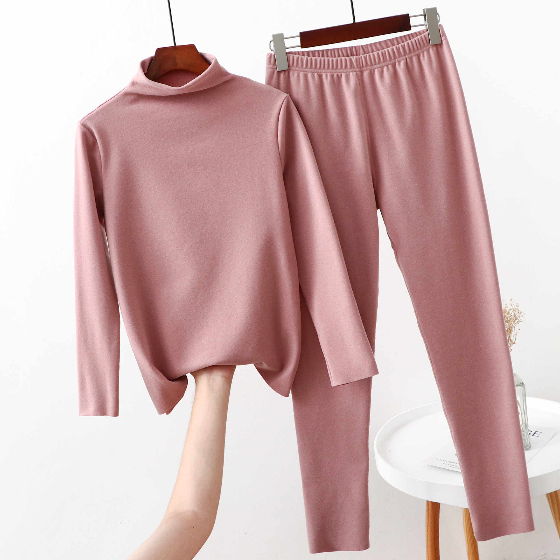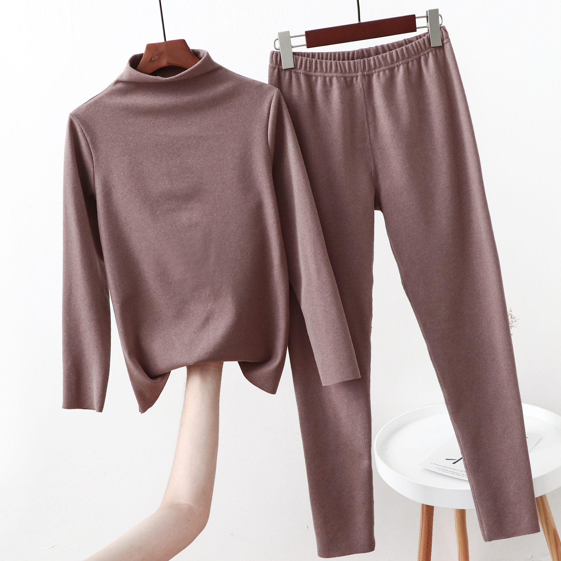 가을과 겨울 세미 하이 칼라 긴팔 가을 바지 투피스 한국식 히알루 론산 미드 벨벳 난방 열 속옷 세트스토어 가기