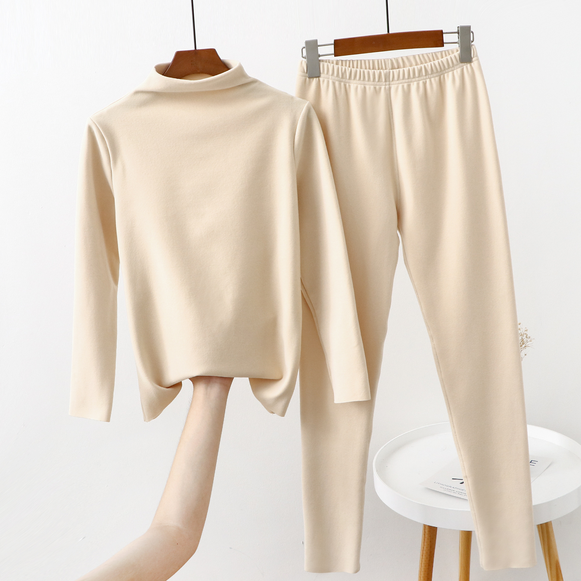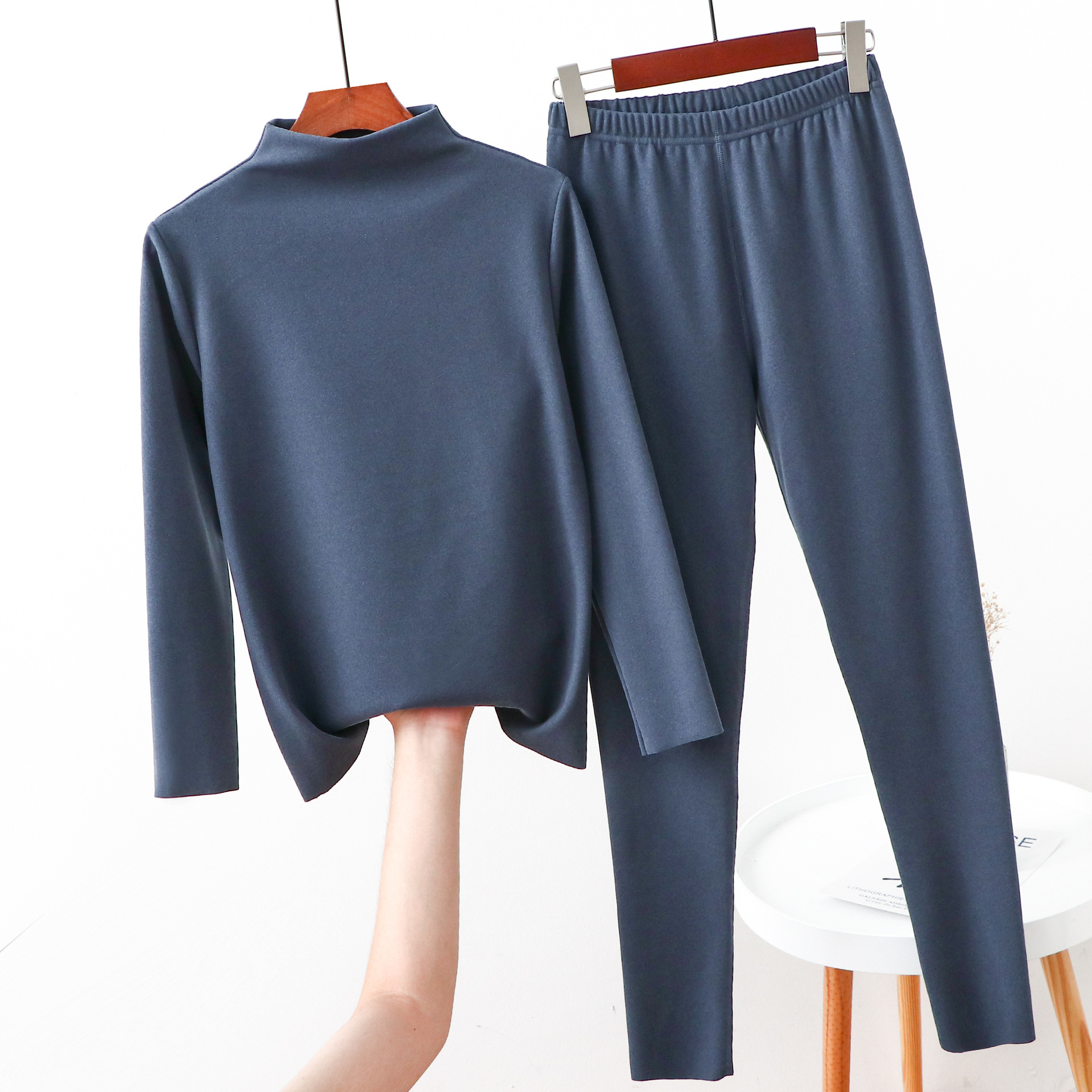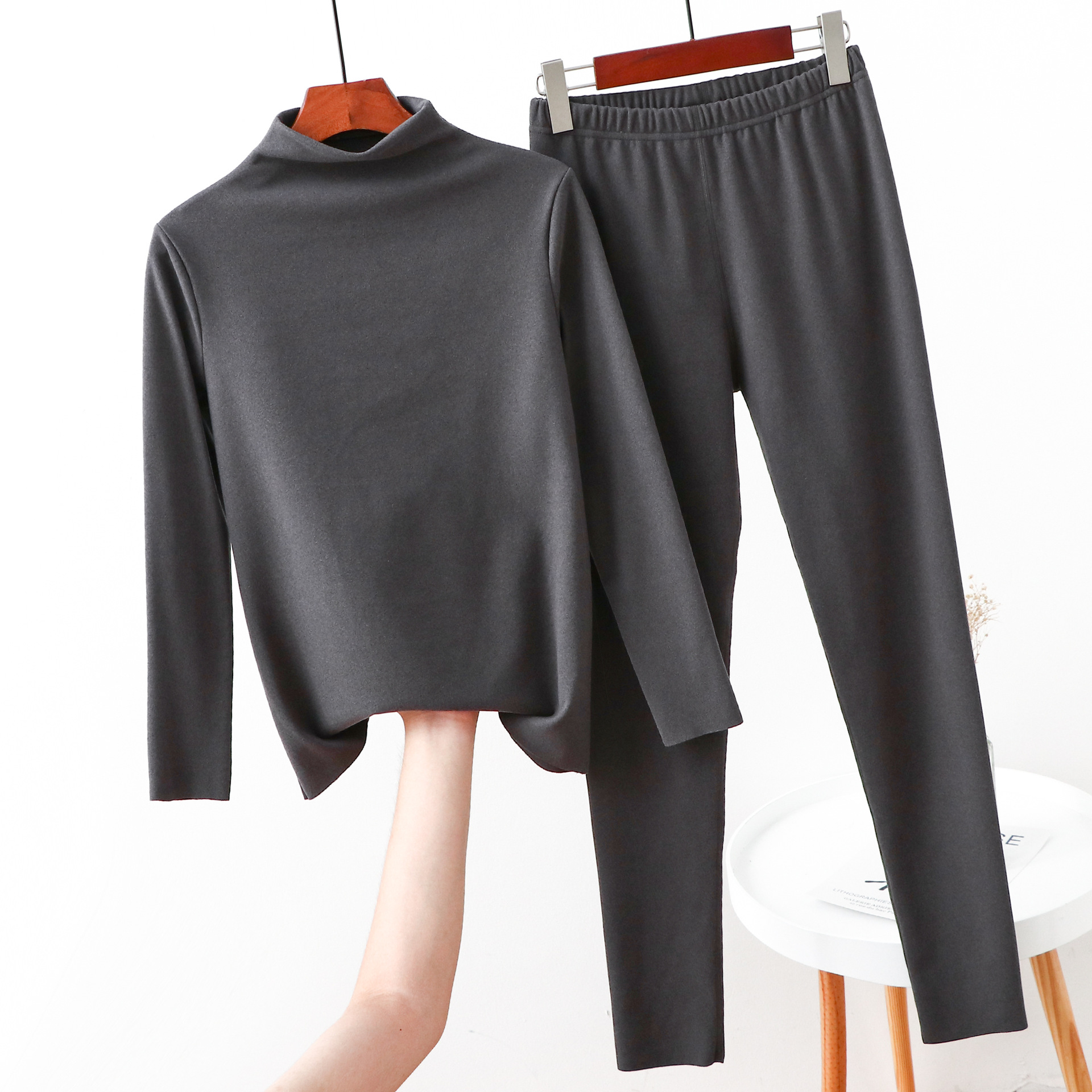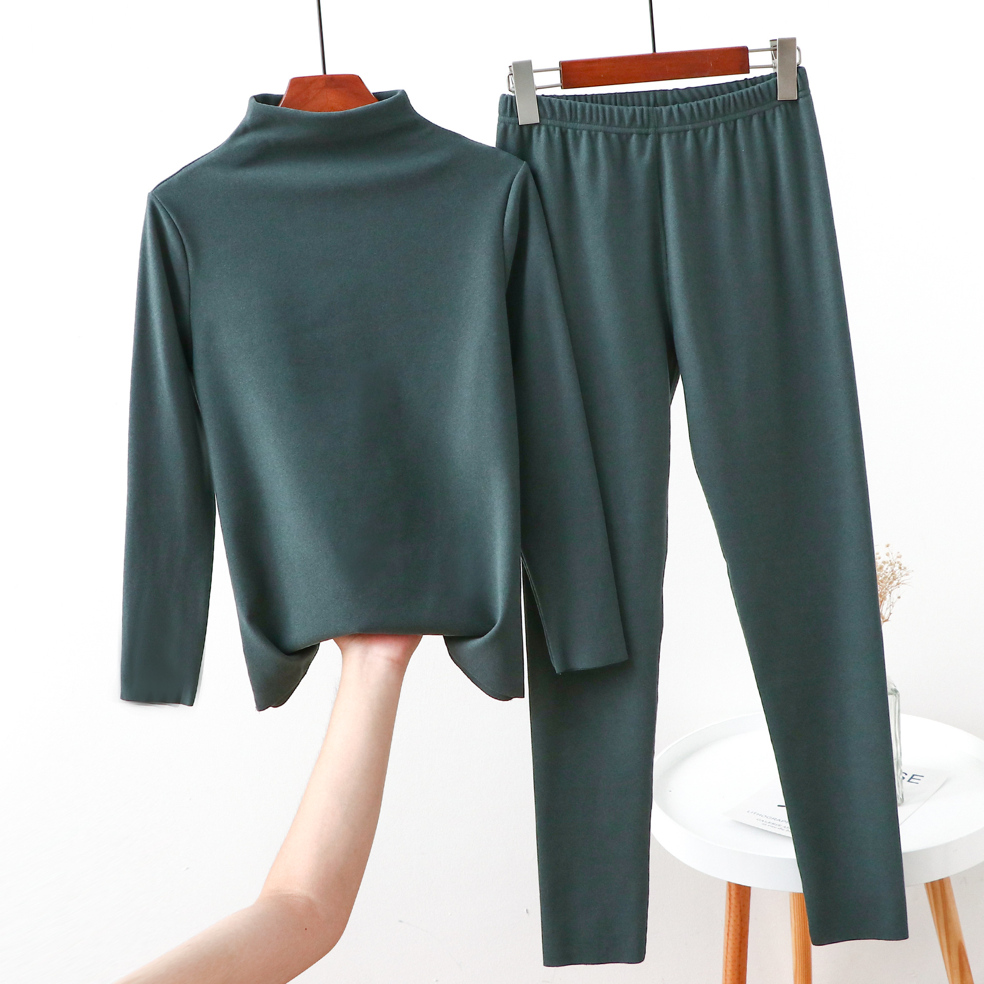 가을과 겨울 세미 하이 칼라 긴팔 가을 바지 투피스 한국식 히알루 론산 미드 벨벳 난방 열 속옷 세트스토어 가기