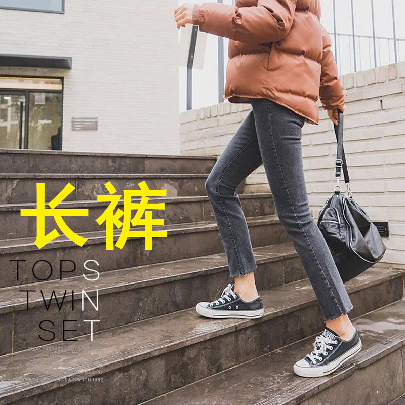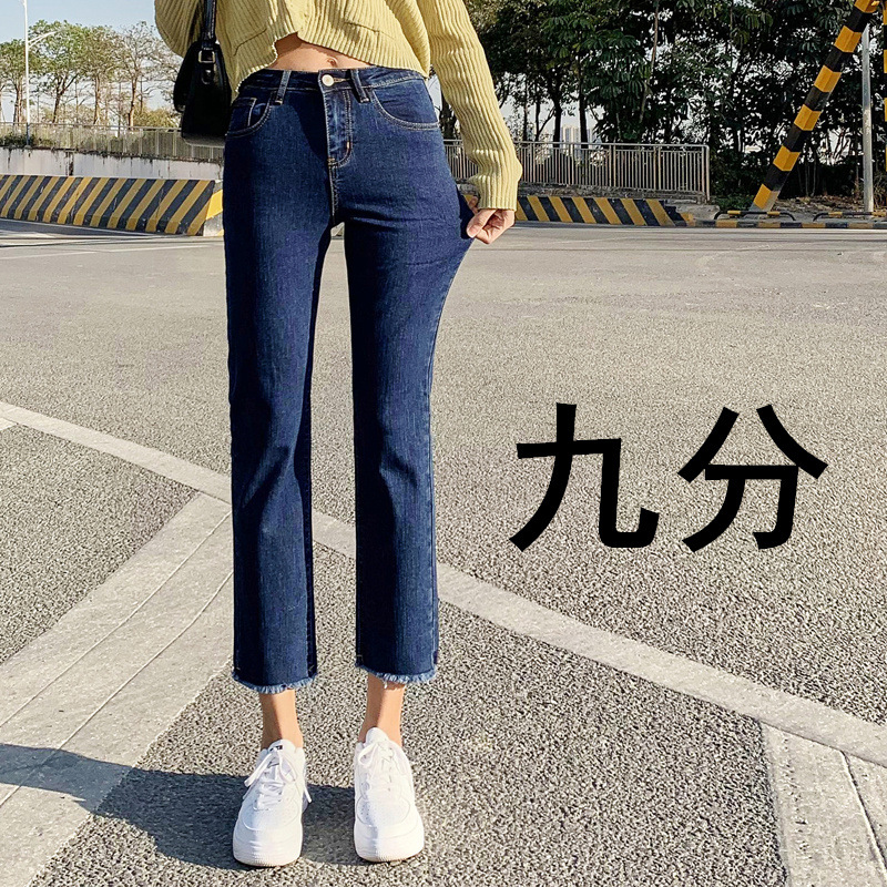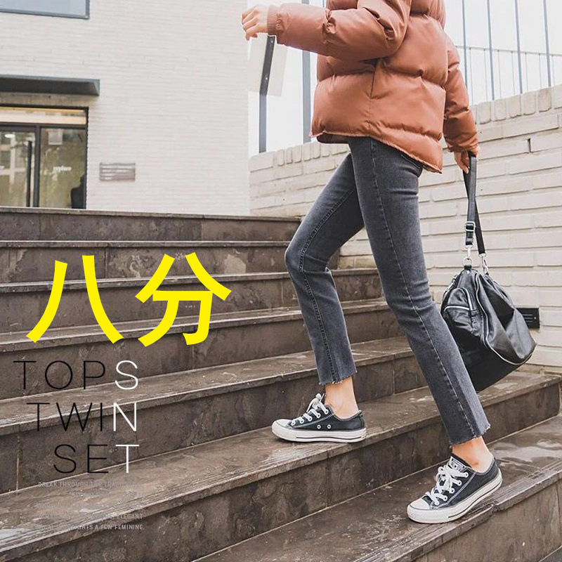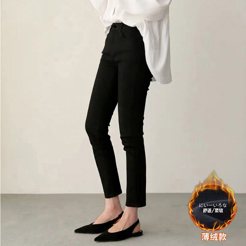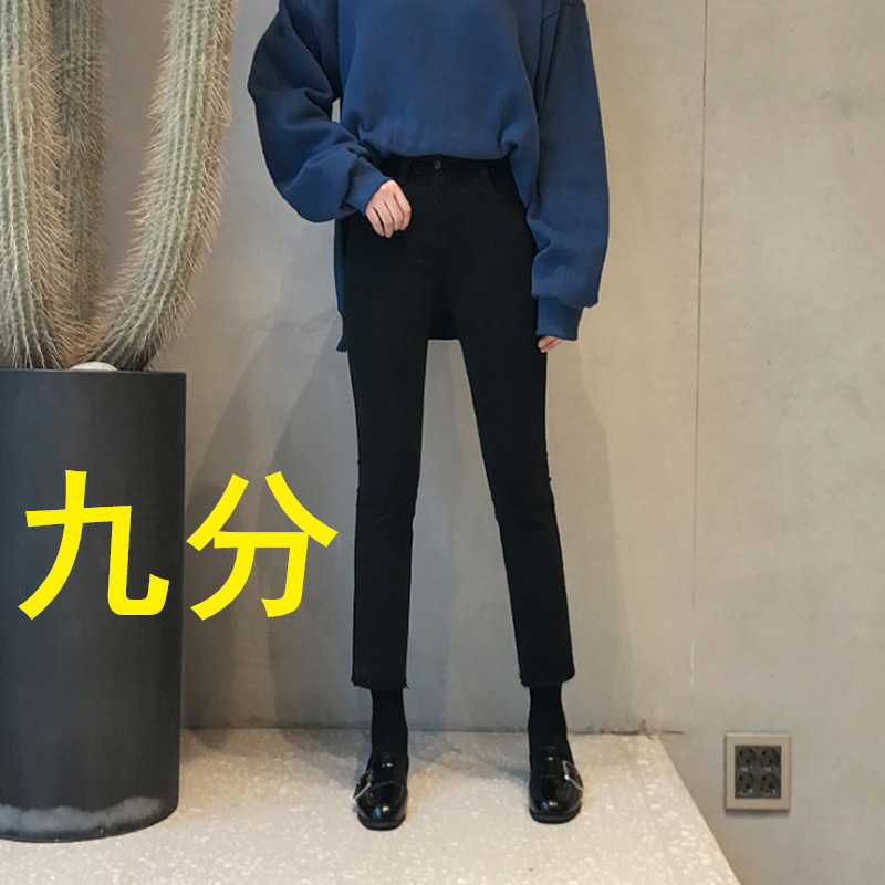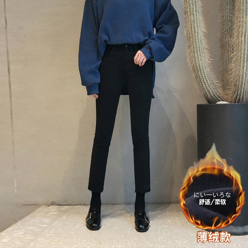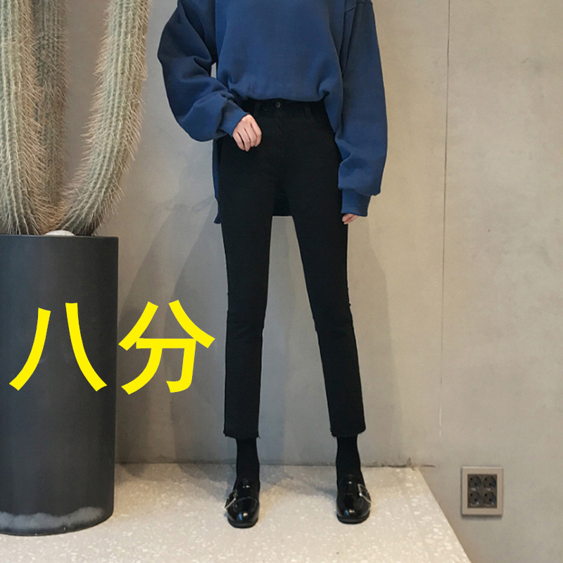 가을 겨울 여성용 벨벳 블랙 스트레이트 데님 팬츠, 하이웨이스트, 신축성, 슬림핏, 쁘띠 사이즈, 8부, 스모크 파이프 팬츠스토어 가기