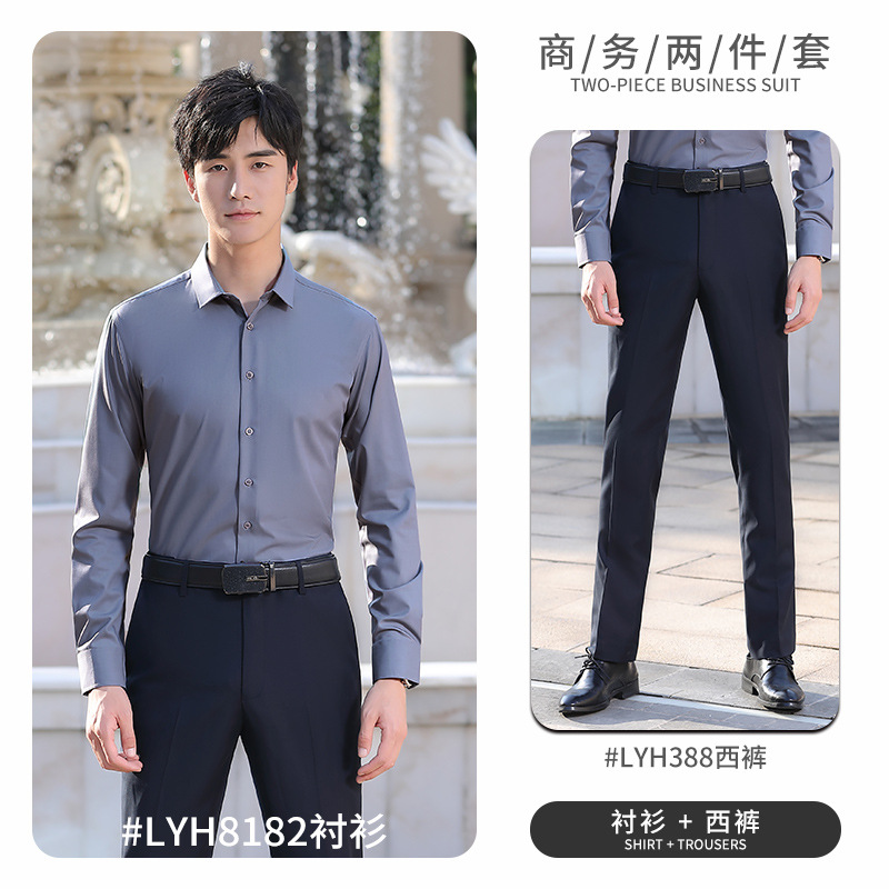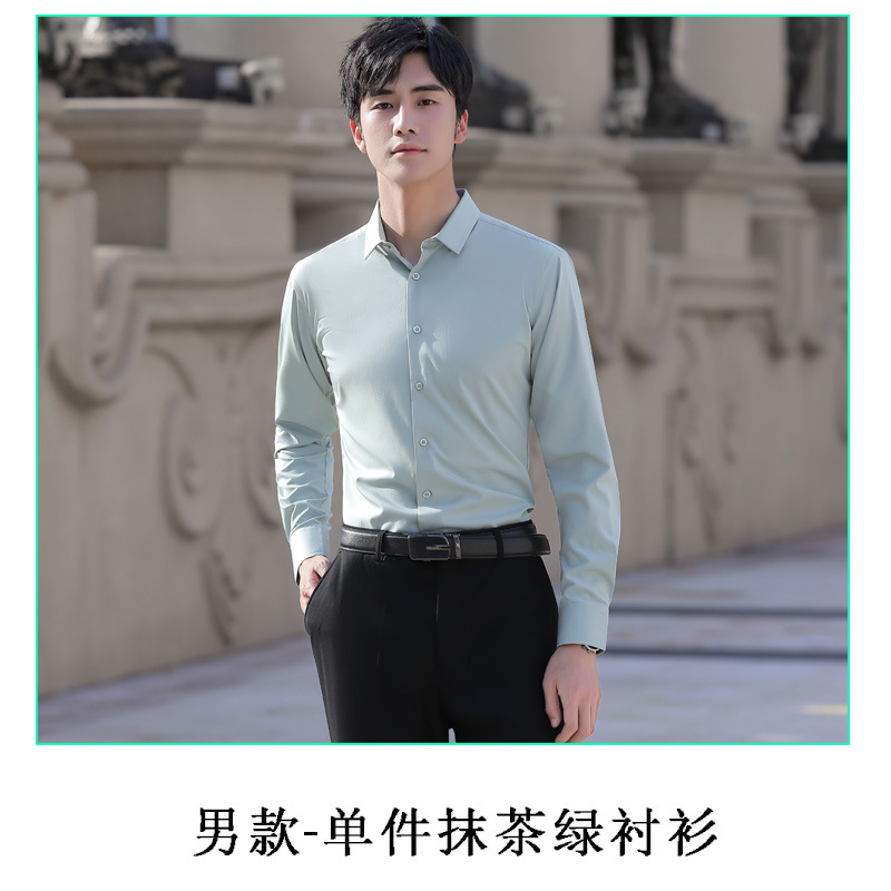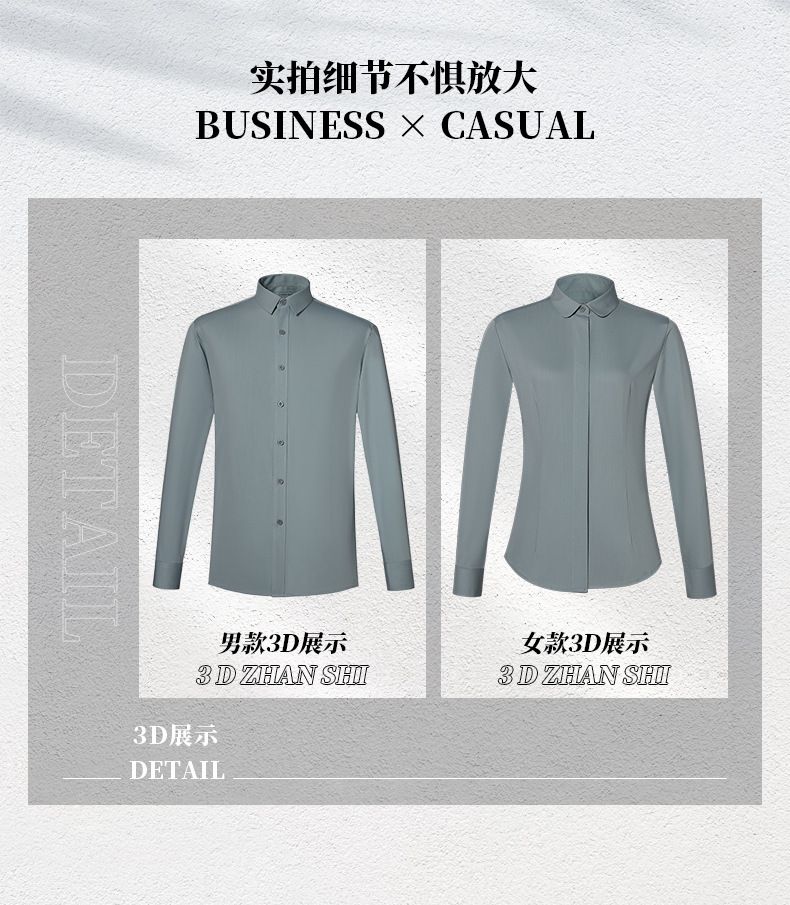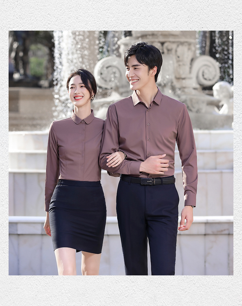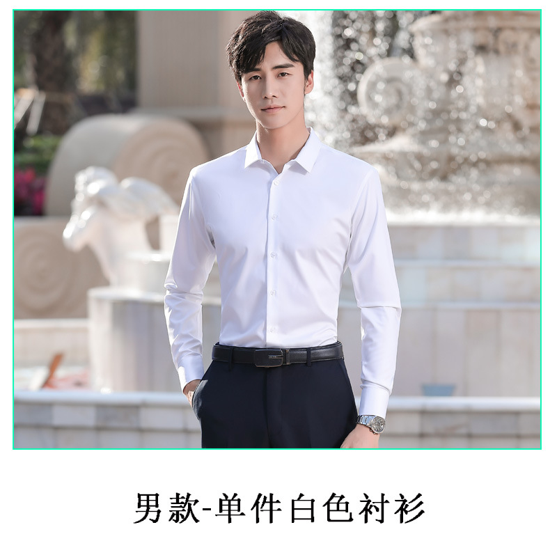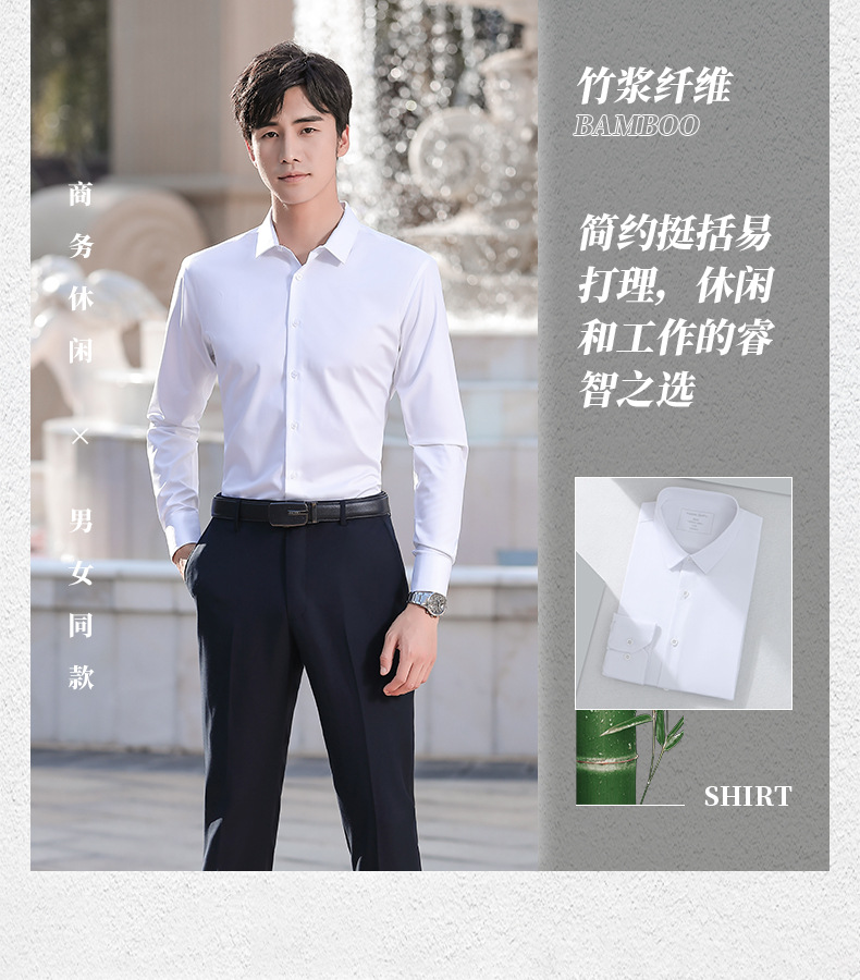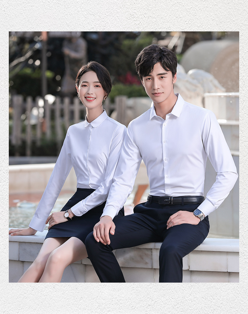 대나무 섬유 긴 소매 흰색 셔츠 남성용 주름 방지 다림질 셔츠 여성용 라운드 애플 칼라 그레이 블루 비즈니스스토어 가기