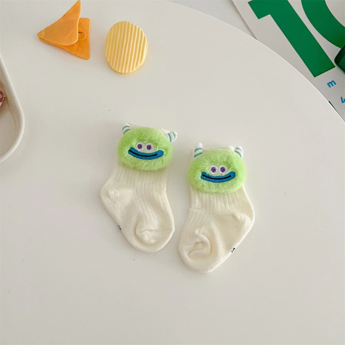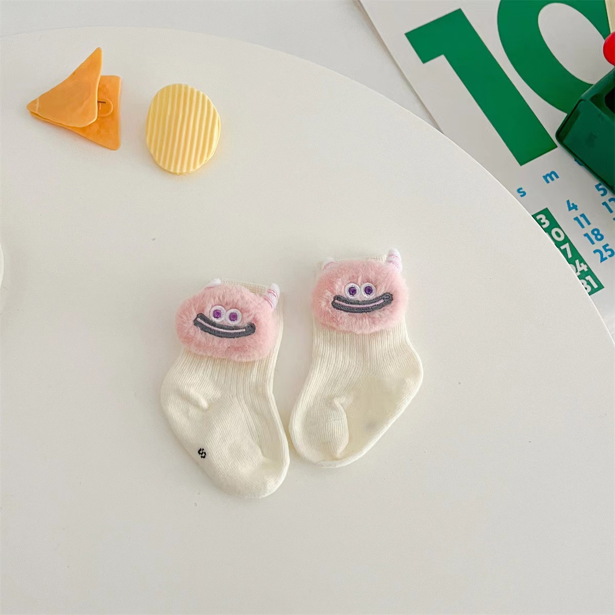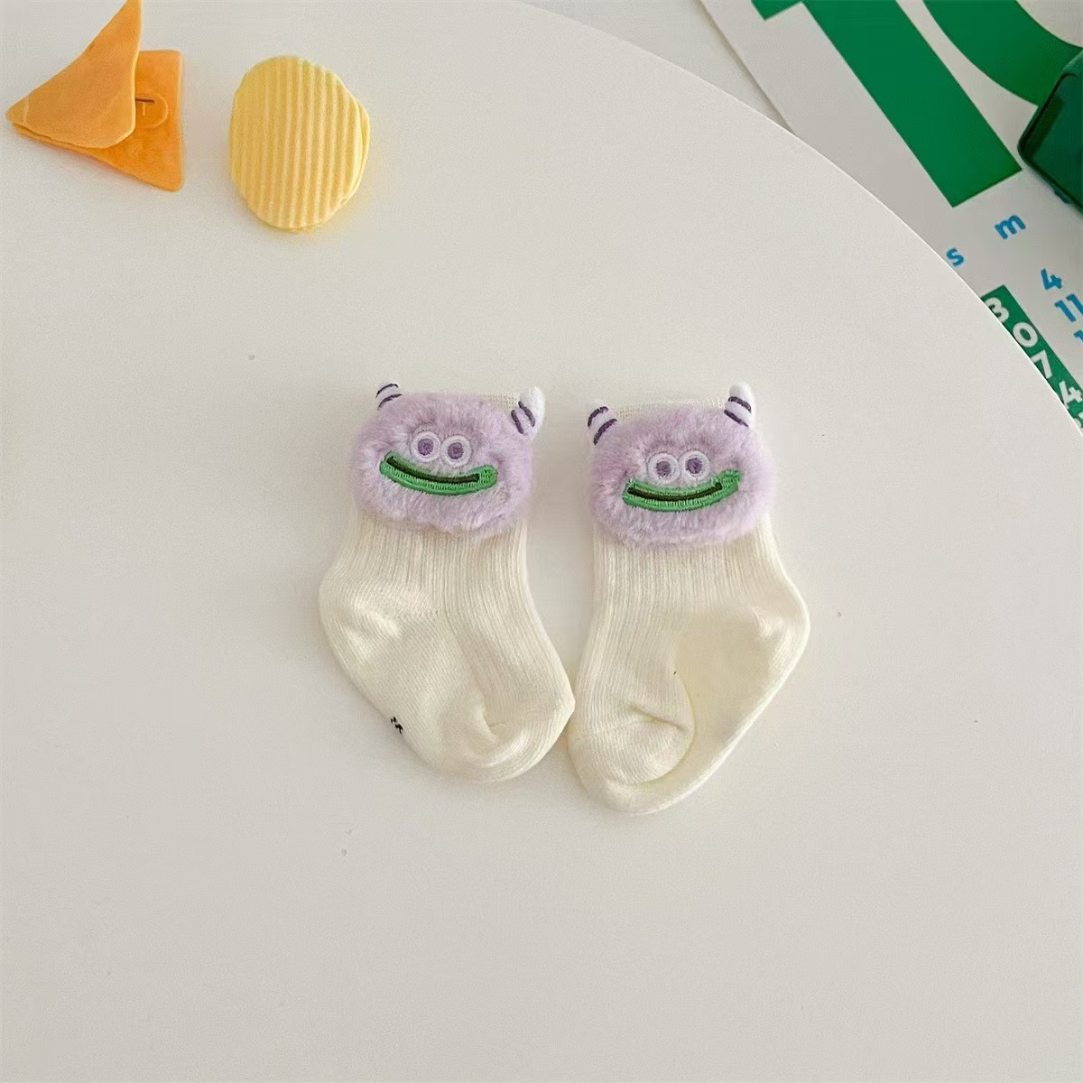 INS 스타일 트렌디 한 신생아 아기 양말 가을과 겨울 한국 스타일 귀여운 만화 말린 중간 튀김 아기 0-1스토어 가기