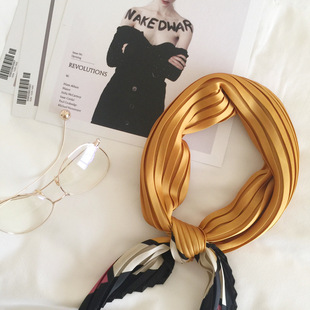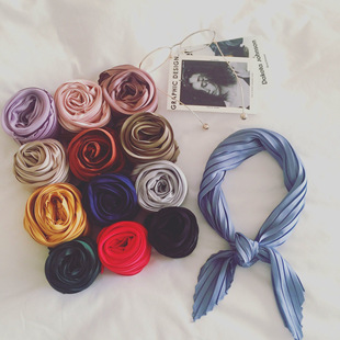 褶皱仿真丝新款春秋韩国小领巾简约百褶纯色70领巾小方巾装饰围巾