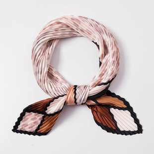 外贸单丝巾印花压皱小方巾70*70褶皱百褶几何条纹波点小丝巾领巾