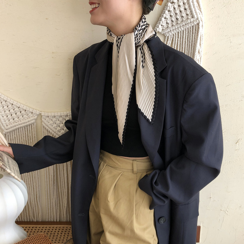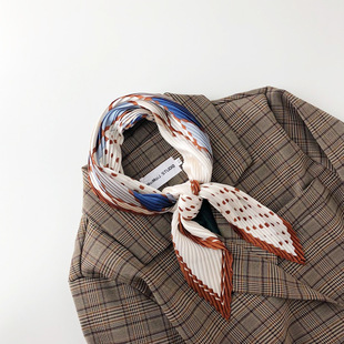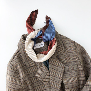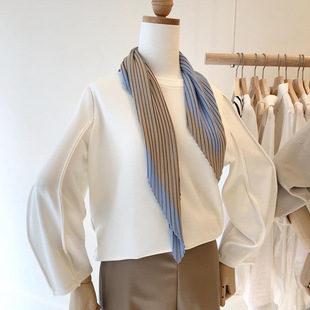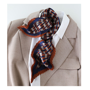 外贸订单款丝巾韩国东大门新款百褶小方巾时尚条纹褶皱压皱小丝巾