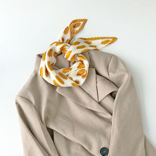 外贸订单款压皱围巾韩版格子褶皱小丝巾批发波点韩国ins小方巾女