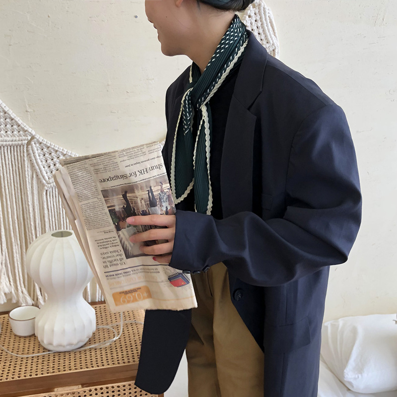 2019新款秋冬季围巾热销压皱小丝巾韩国小领巾百搭波点丝巾女批发