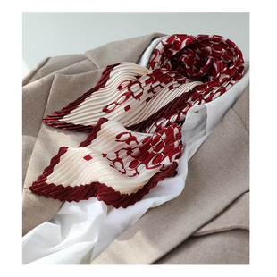 2019新款日系褶皱压皱丝巾女士时尚百搭装饰领巾红色高跟鞋小方巾