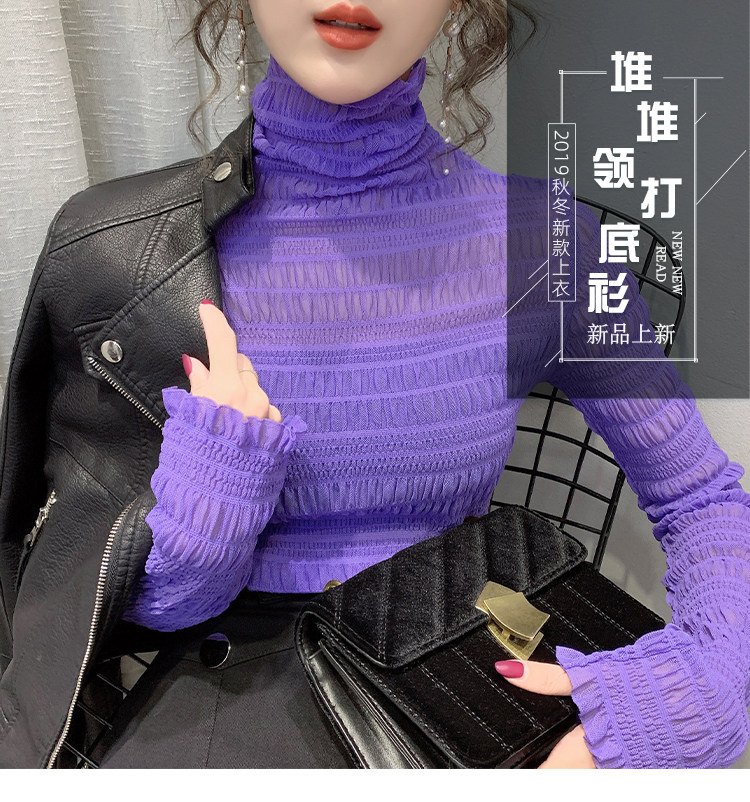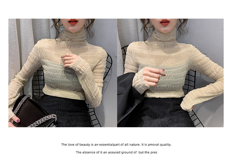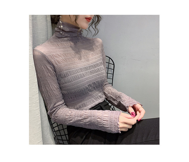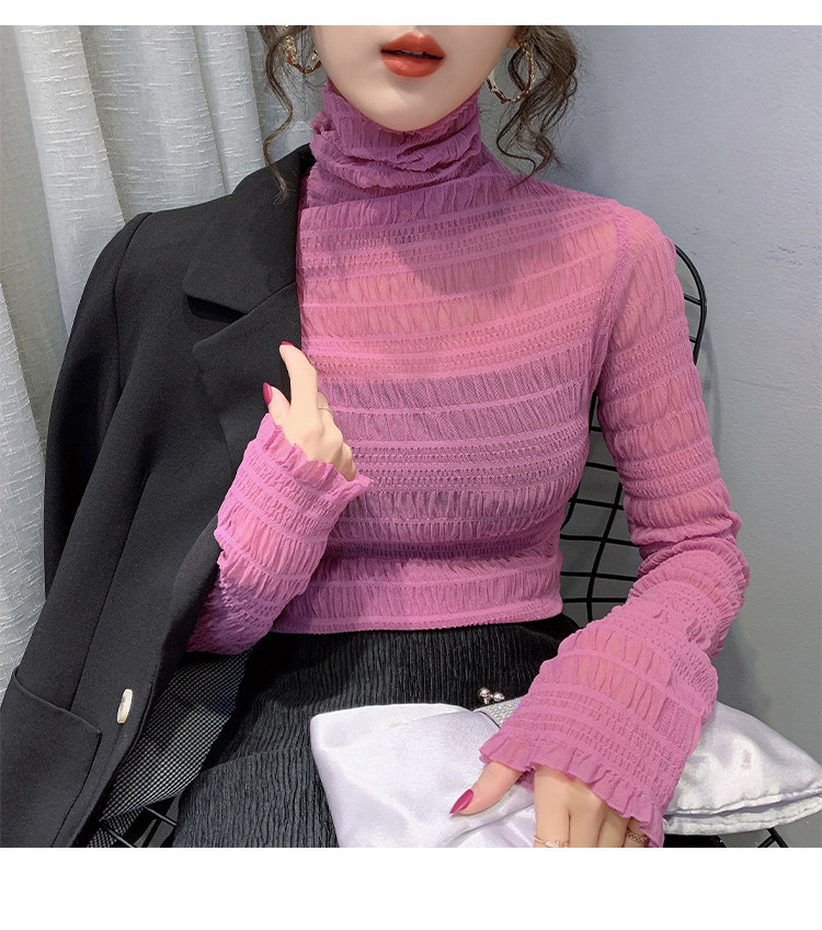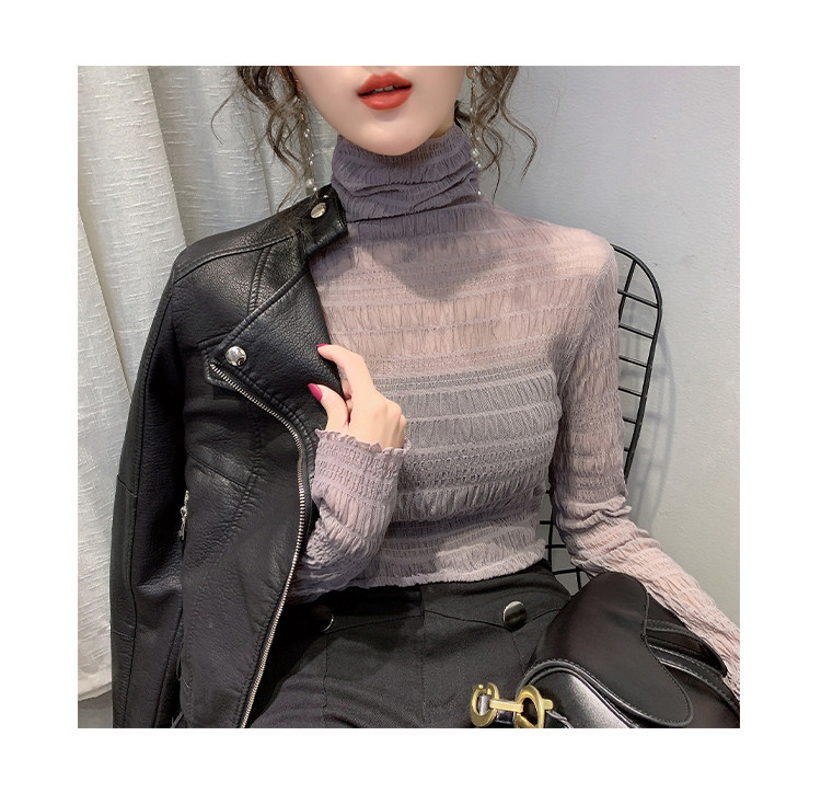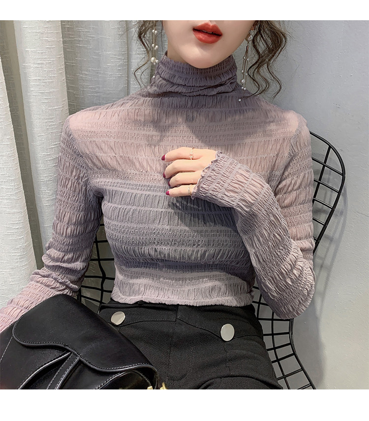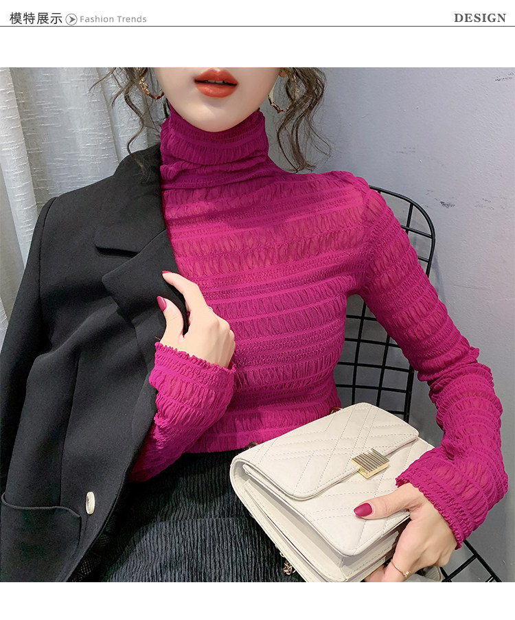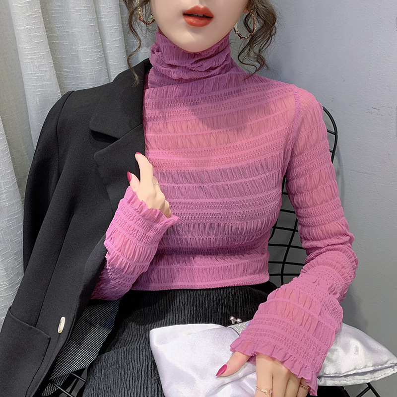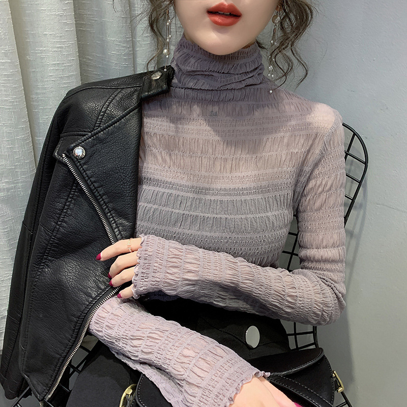 힙 하이 칼라 메쉬 레이스 베이스 셔츠 여성의 가을과 겨울 새로운 스타일 서유럽 세련된 작은 셔츠 탑