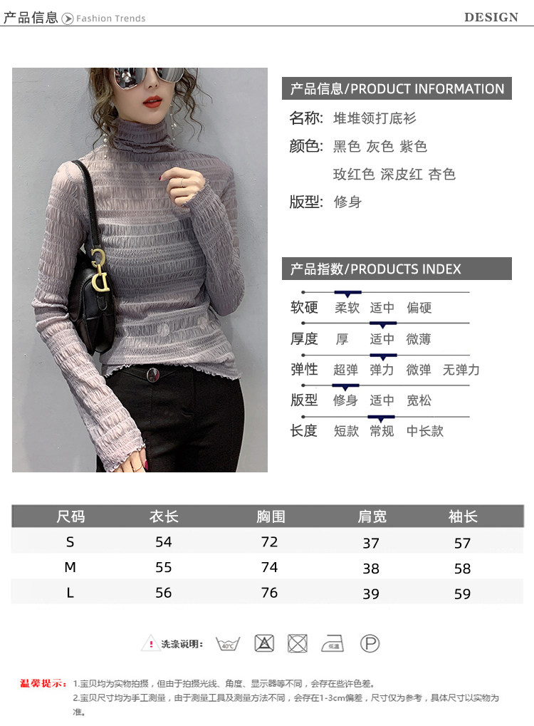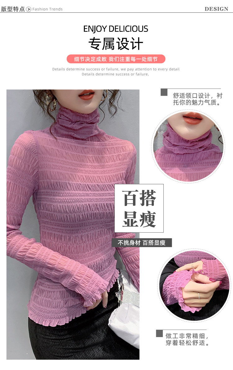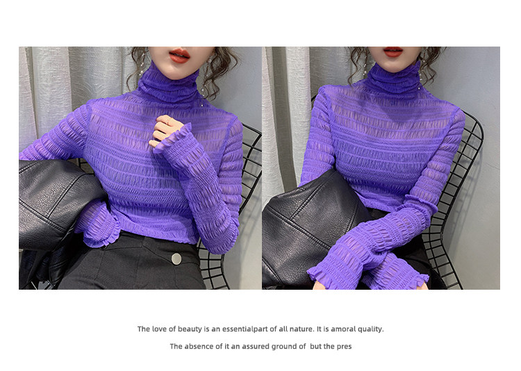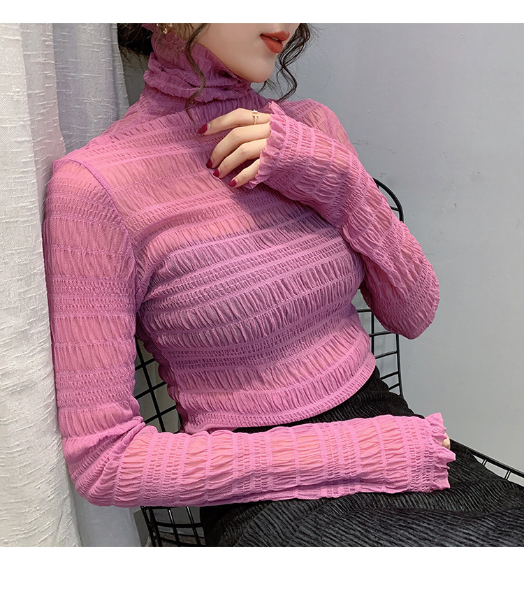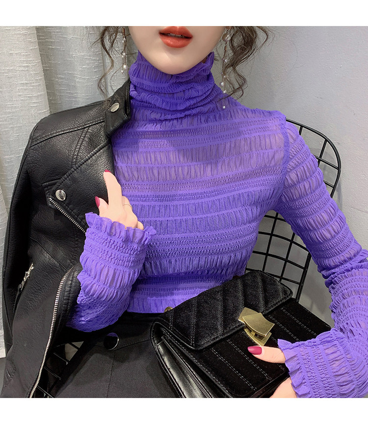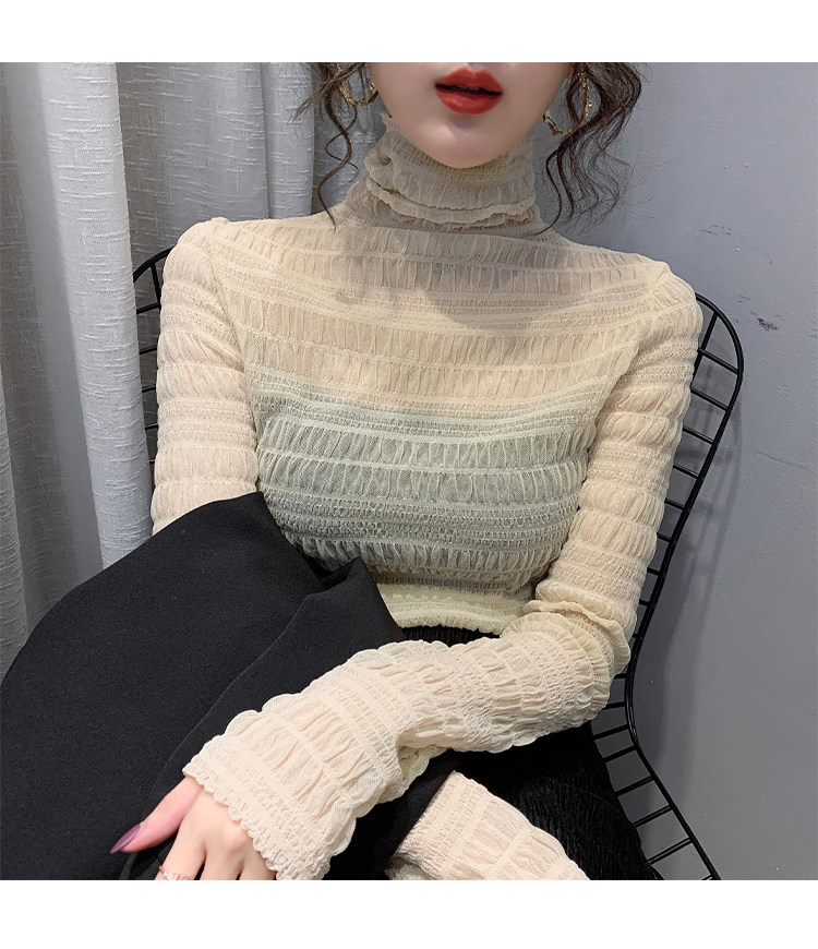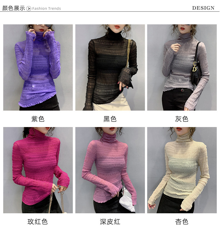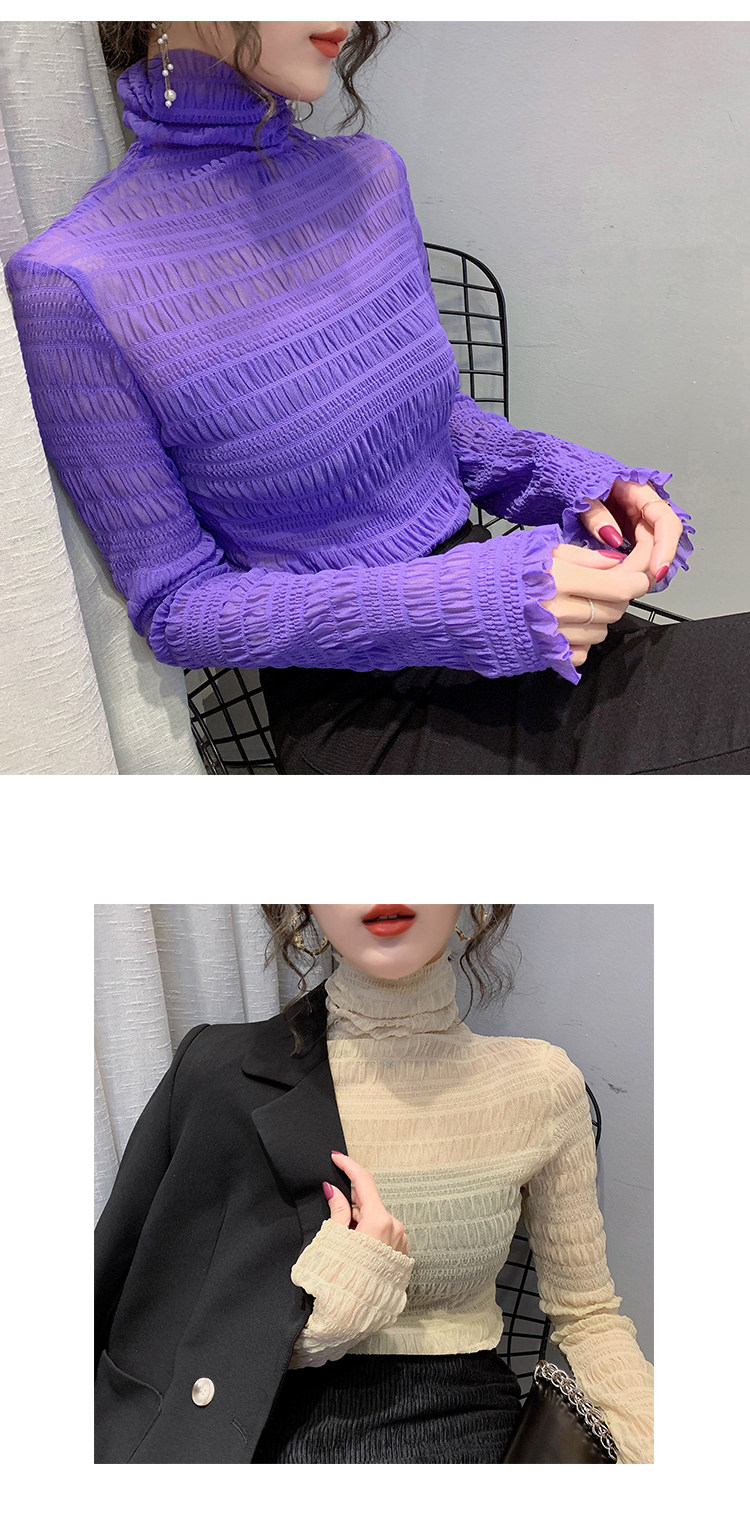 힙 하이 칼라 메쉬 레이스 베이스 셔츠 여성의 가을과 겨울 새로운 스타일 서유럽 세련된 작은 셔츠 탑