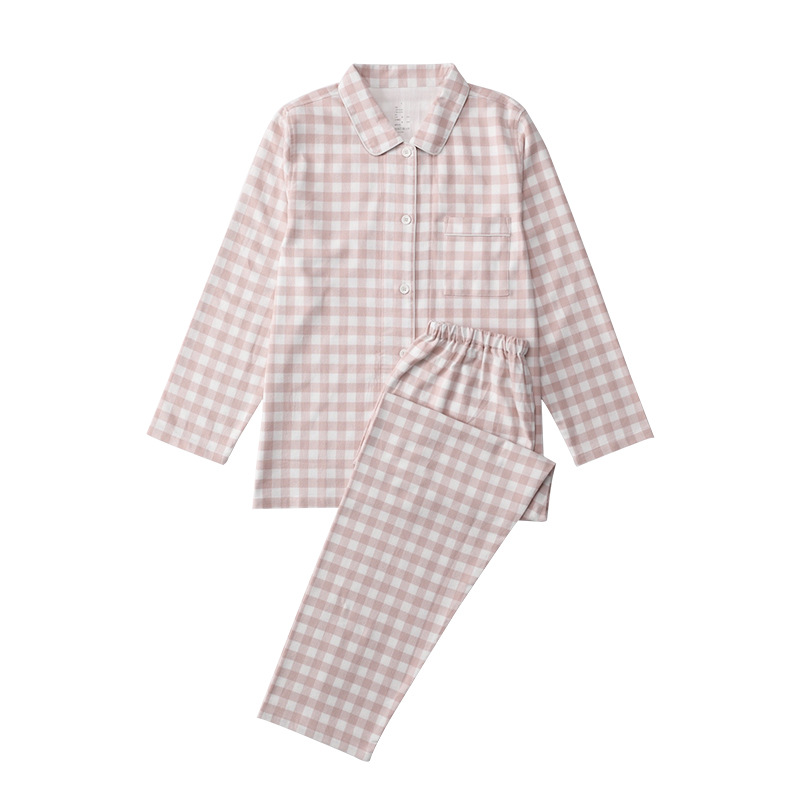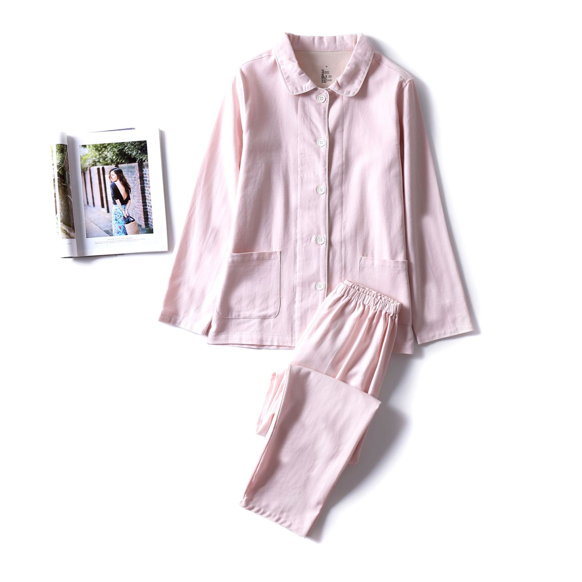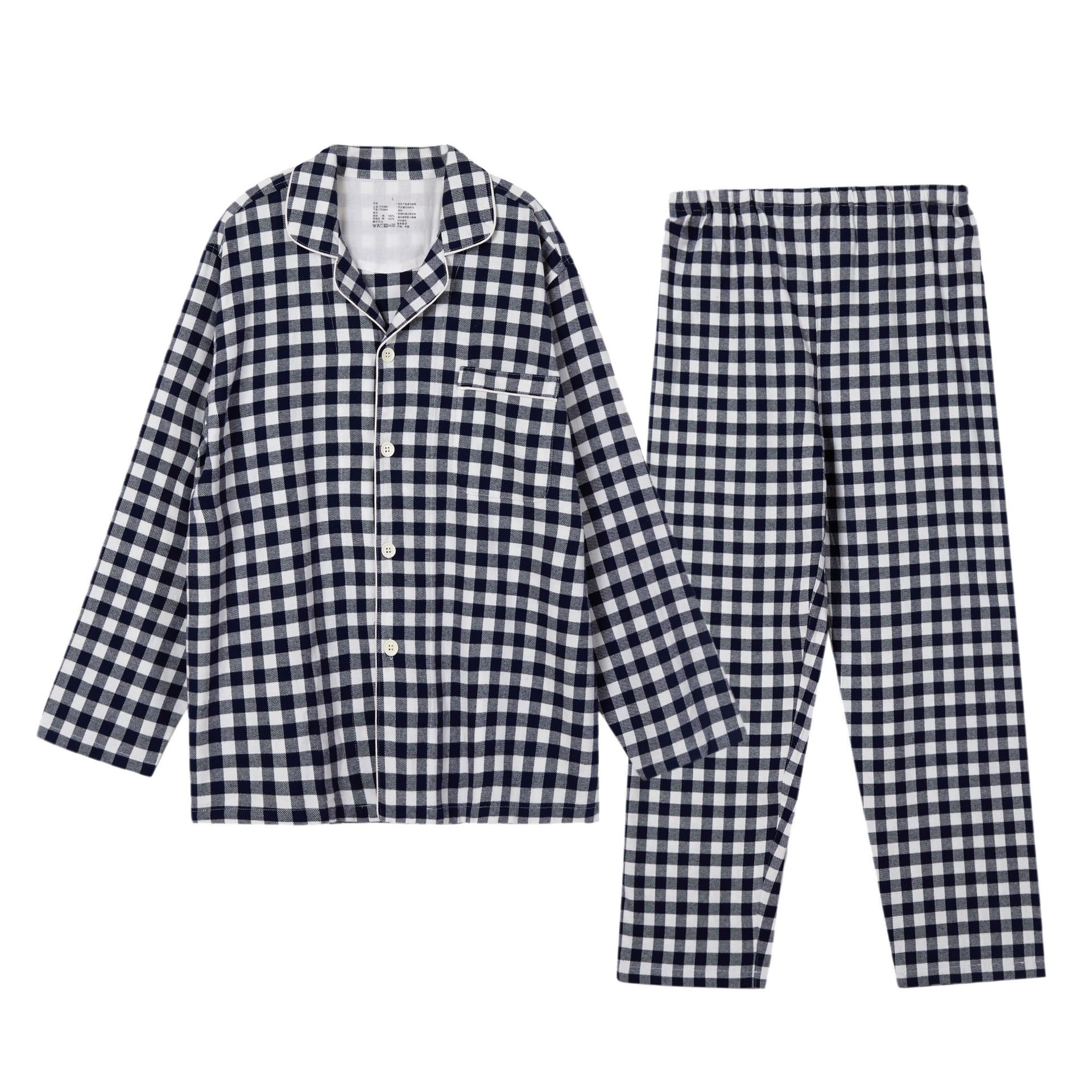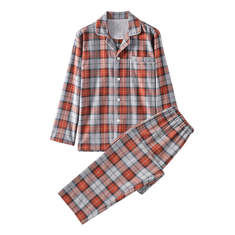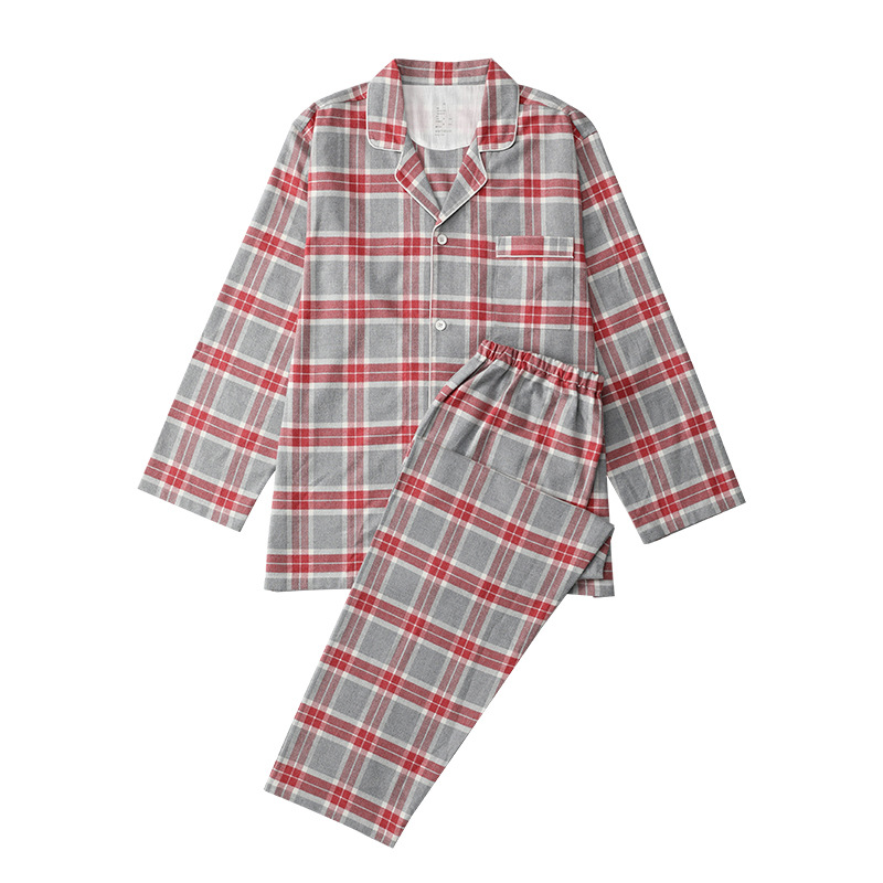 가을과 겨울 순면 잠옷 세트 양털 격자 무늬 홈 옷 여성용 긴 소매 바지 커플 스크럽 격자 무늬 잠옷