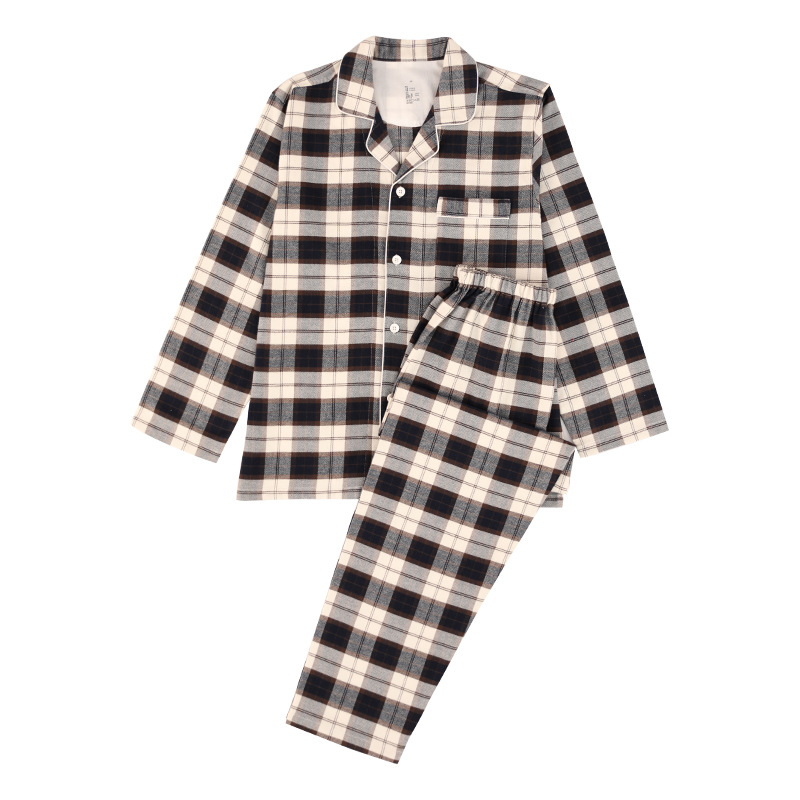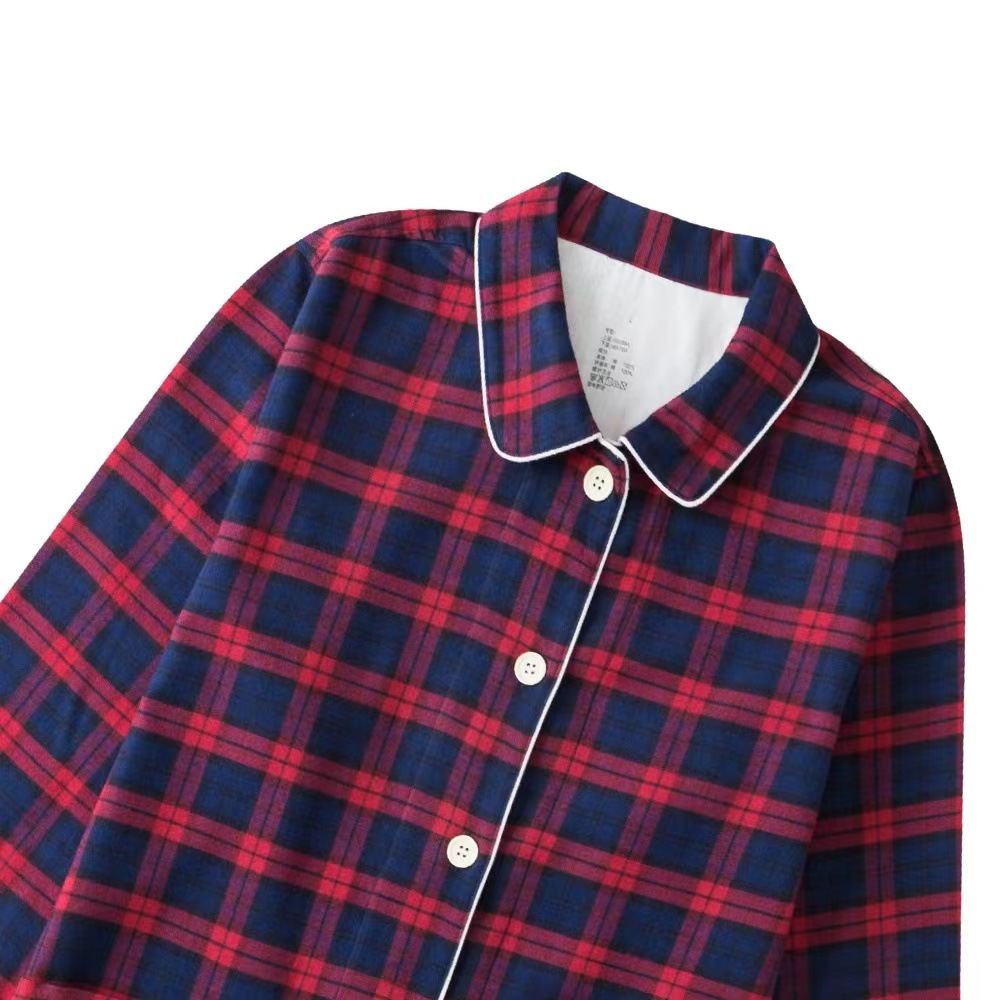 가을과 겨울 순면 잠옷 세트 양털 격자 무늬 홈 옷 여성용 긴 소매 바지 커플 스크럽 격자 무늬 잠옷스토어 가기