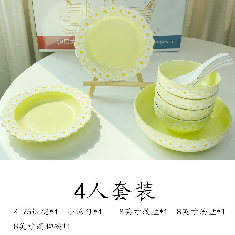 ins风雏菊碗碟套装家用饭碗沙拉碗西餐甜品牛排盘子陶瓷餐盘批发
