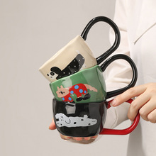 可爱大耳水杯卡通动物马克杯大把手陶瓷杯早餐杯办公室情侣咖啡杯
