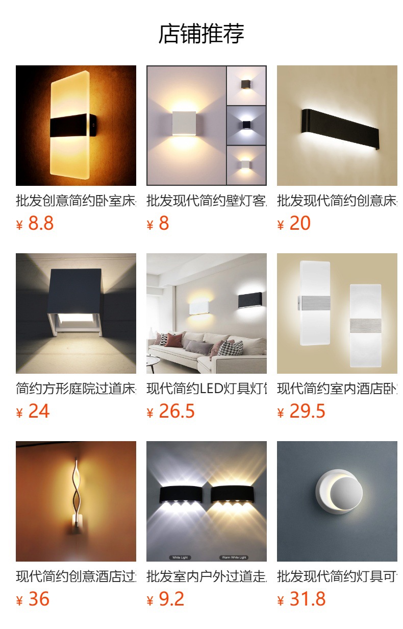 도매 현대 미니멀 실내 침실 거실 호텔 복도 문 계단 야외 방수 LED 혼 벽 램프스토어 가기