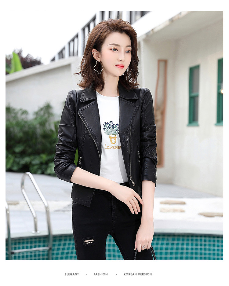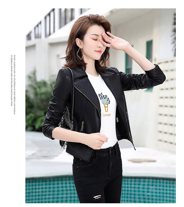 여성용 가죽 자켓, 짧은 스타일, 허리 조임, 다용도, 봄 가을 슬림핏, 바이커 스타일, 2025년 신상 가을 여성 가죽 자켓스토어 가기