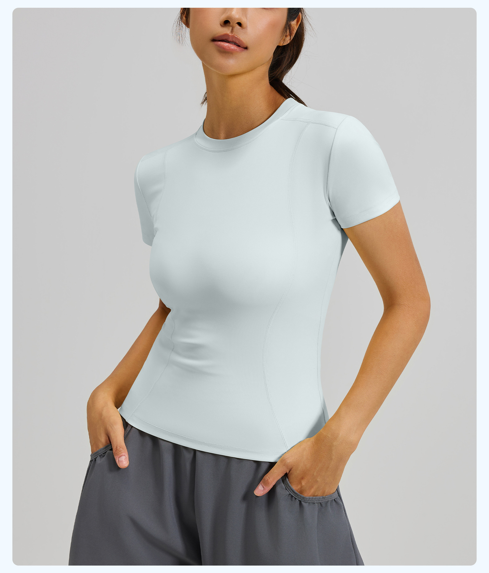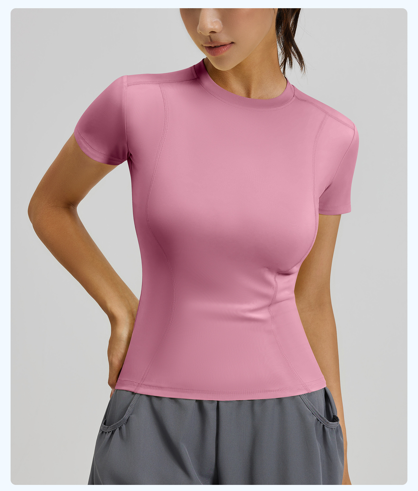 Juyitang 슬리밍 타이트 스포츠 탑 여성용 야외 러닝 피트니스 트레이닝 요가웨어 반팔스토어 가기