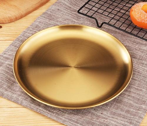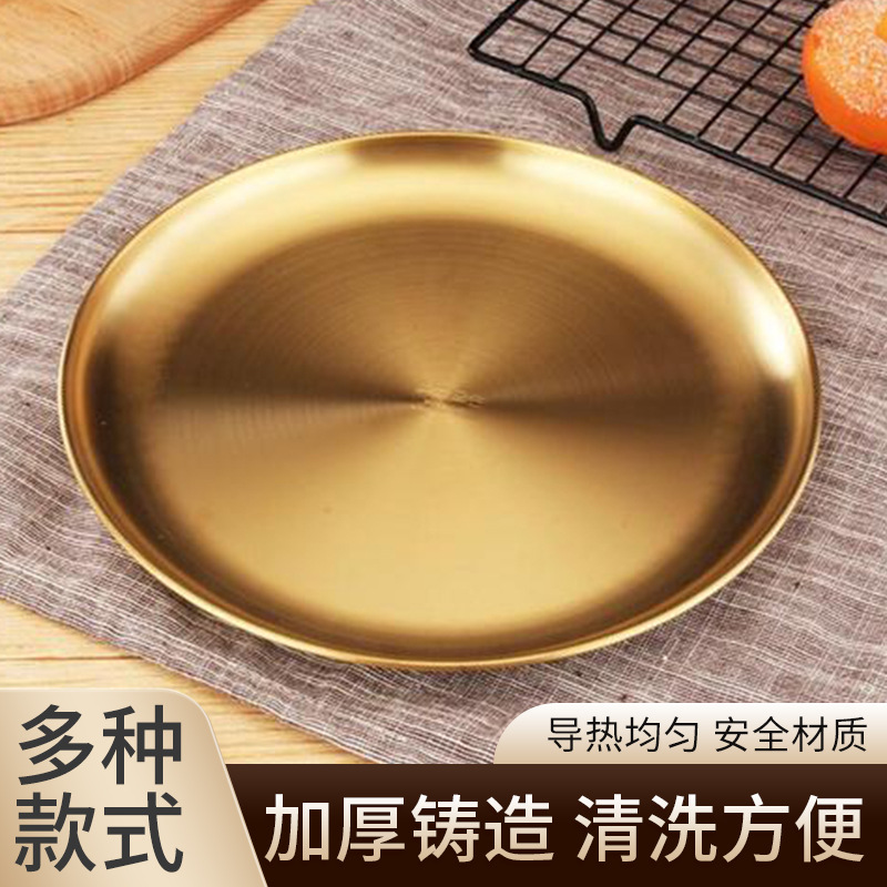 304 스테인레스 스틸 바베큐 플레이트 한국식 라운드 샌딩 밝은 단열 방열판 디저트 플레이트 스토리지 플레이트 골드 도금스토어 가기