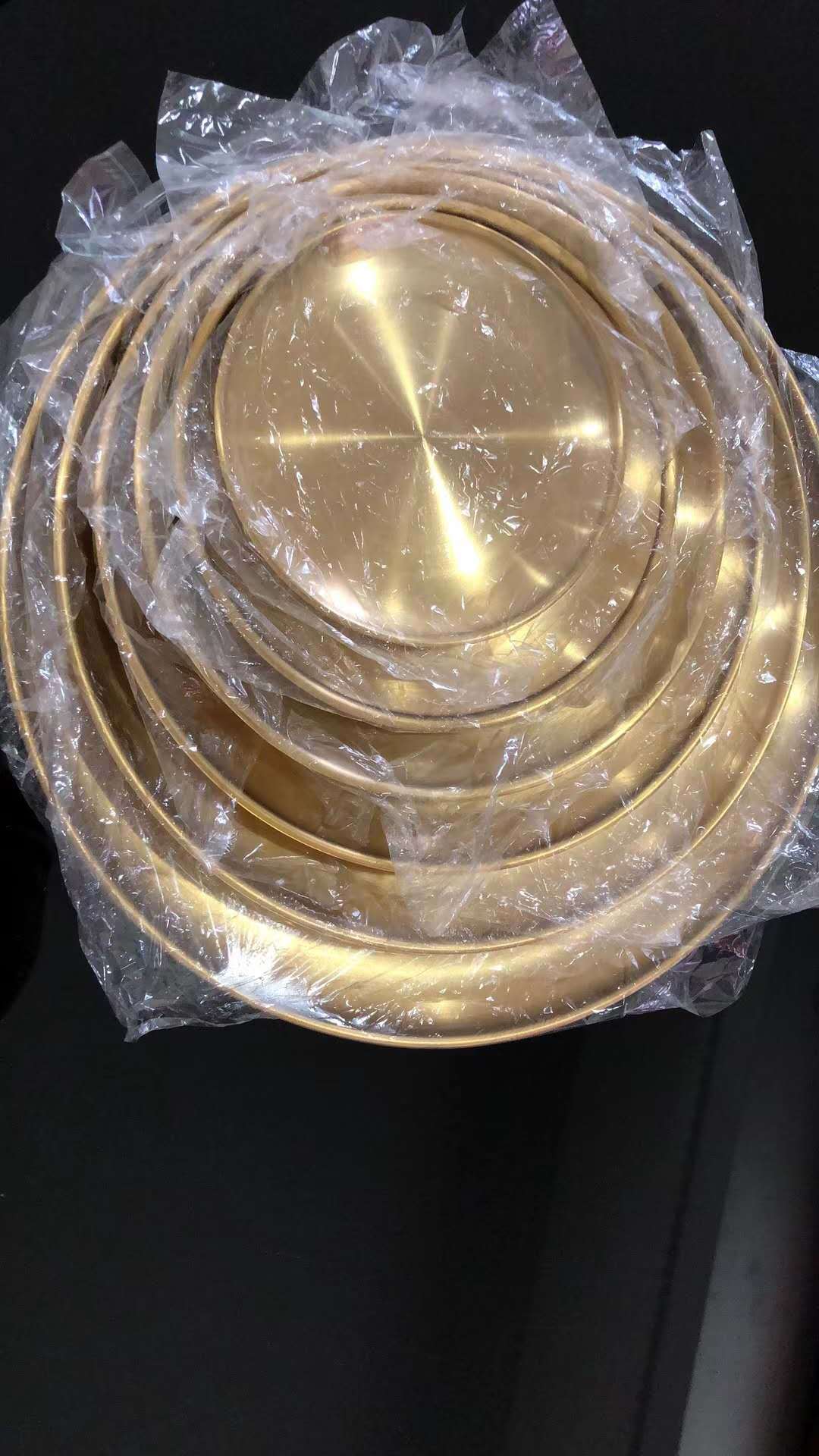 304 스테인레스 스틸 바베큐 플레이트 한국식 라운드 샌딩 밝은 단열 방열판 디저트 플레이트 스토리지 플레이트 골드 도금
