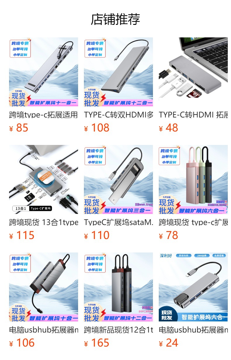 电脑usb扩展器hub扩展坞typec拓展坞八合一侧插分集线器转接多口