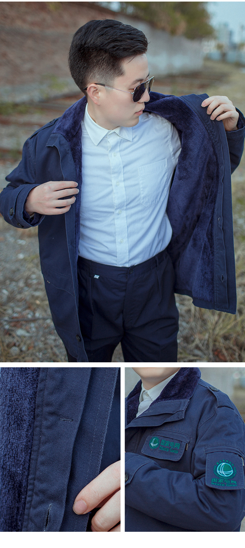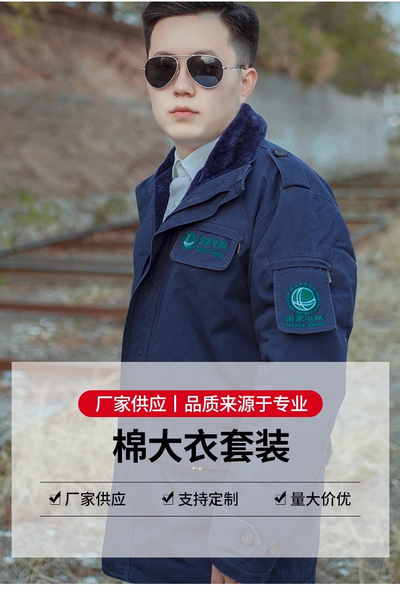 코튼 스테이트 그리드 코튼 코트 전원 국 전원 공급 장치 회사 두꺼운 코튼 코트 긴 방한 따뜻한 코트