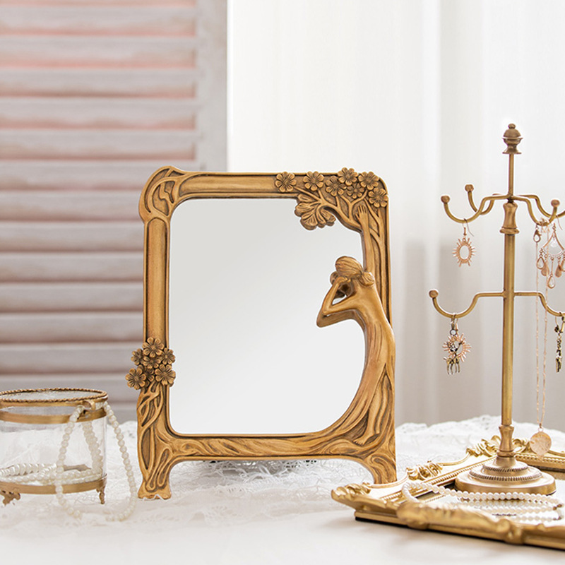 유럽식 수지 빈티지 메이드 거울 화장대 거울 장식 창조적 인 거울 수지 공예 장식품