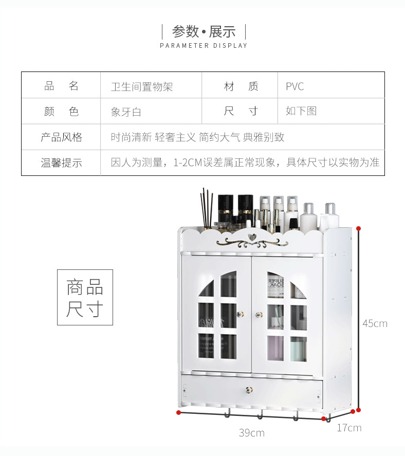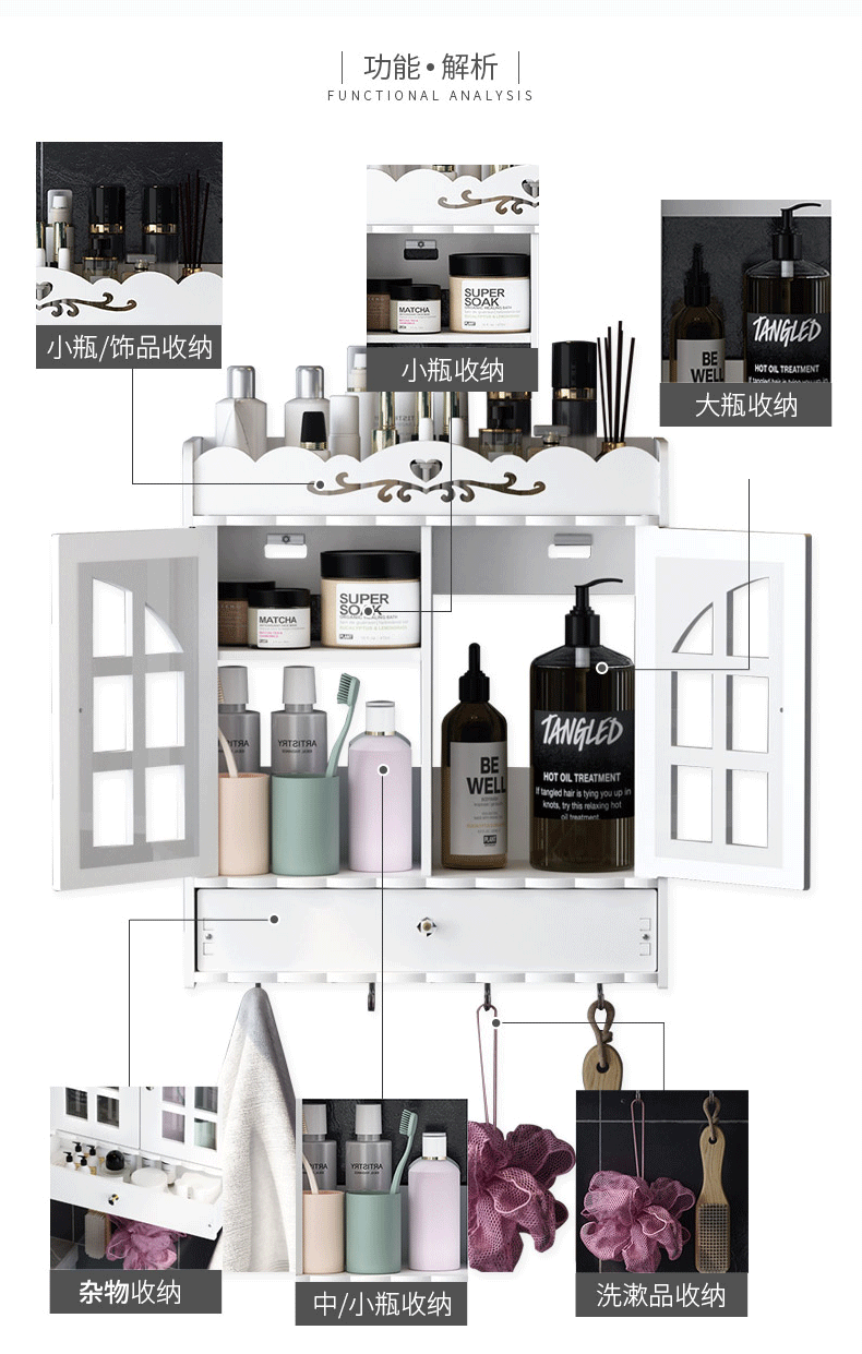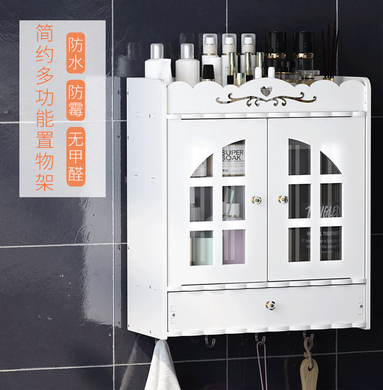 • 욕실 더블 도어 캐비닛 D [선물 후크 마크 네일 접착제]]
