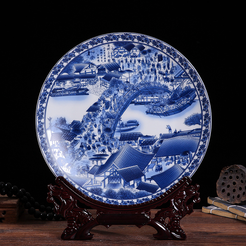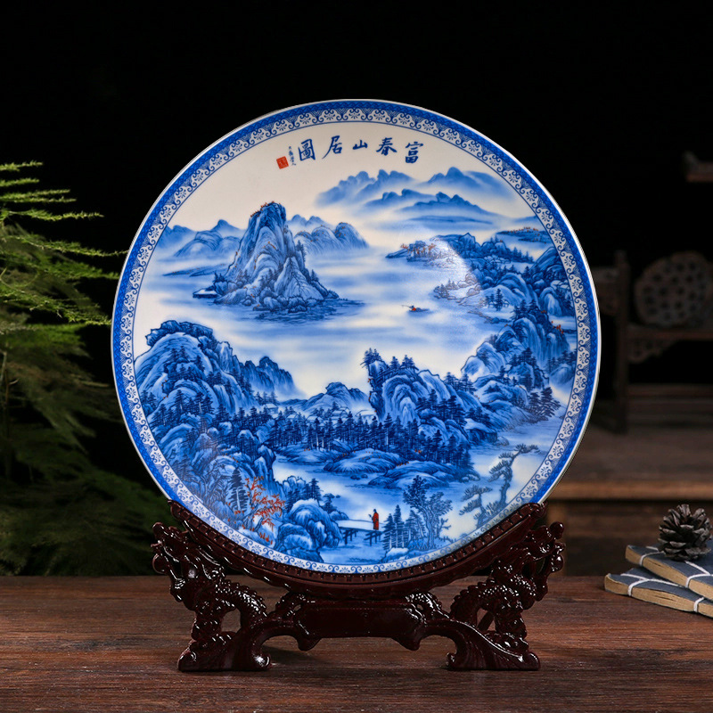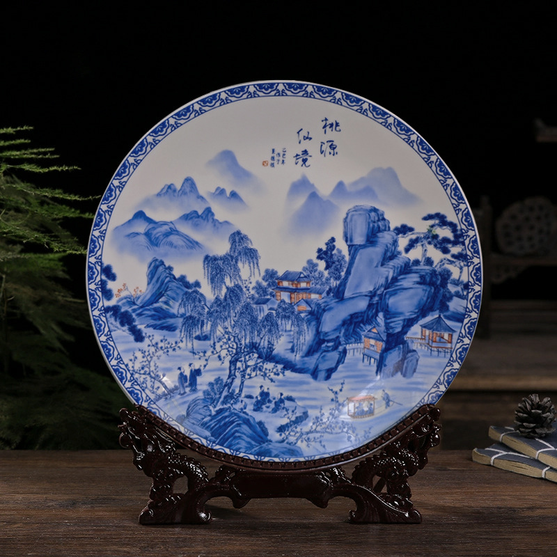 Jingdezhen 세라믹 도자기 접시 중국 가정 장식 파란색과 흰색 파스텔 접시 공예 선물 장식품 도매스토어 가기