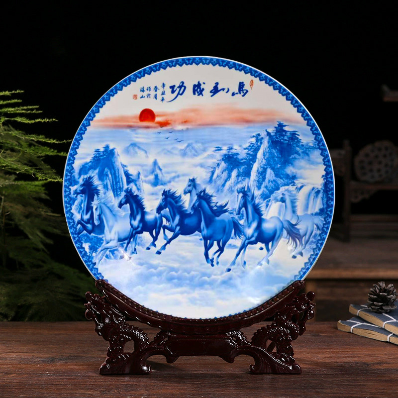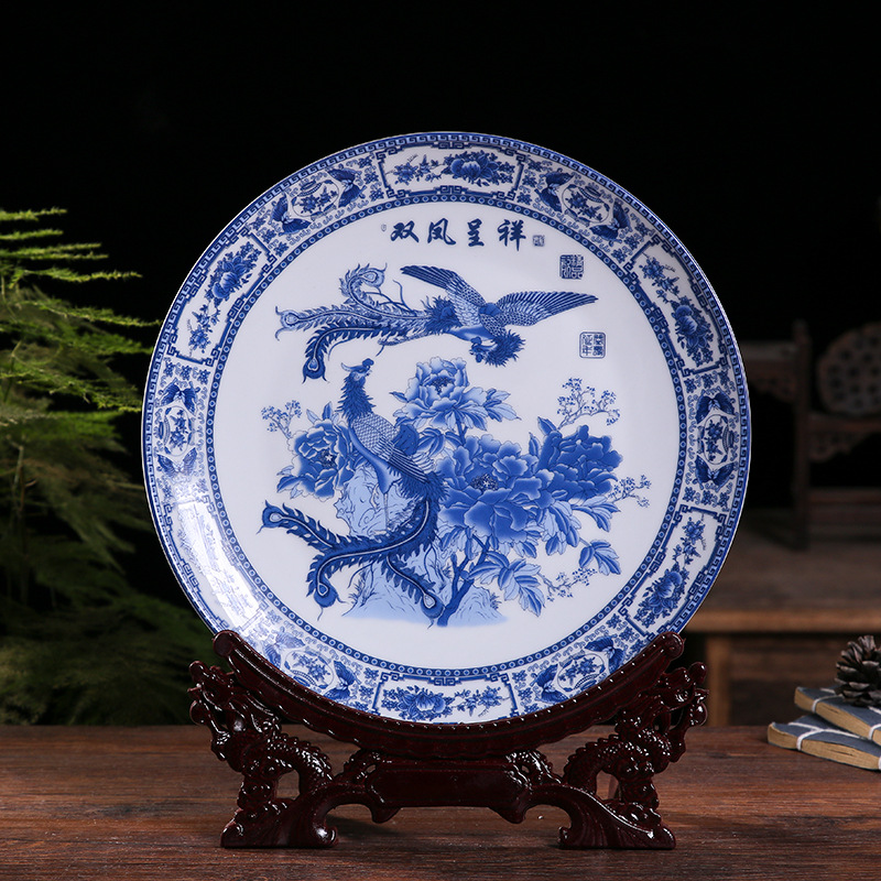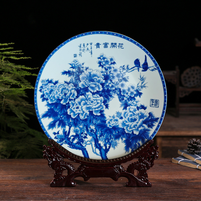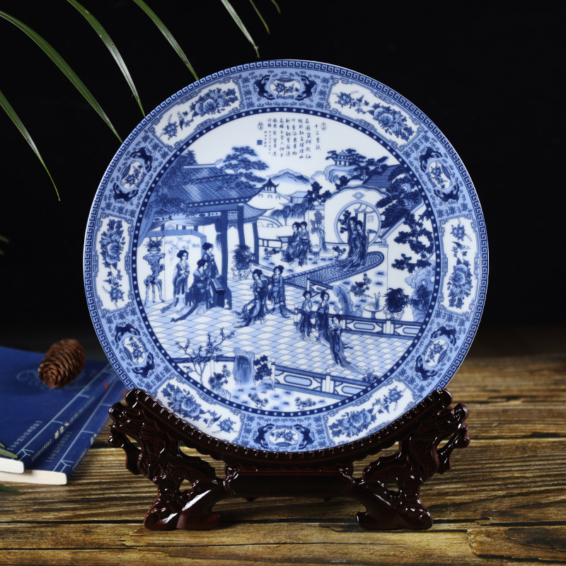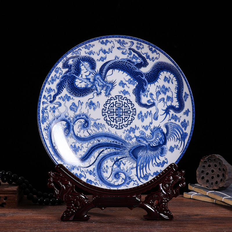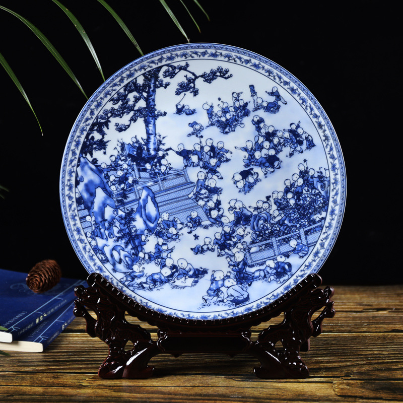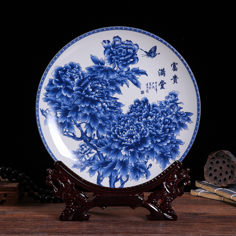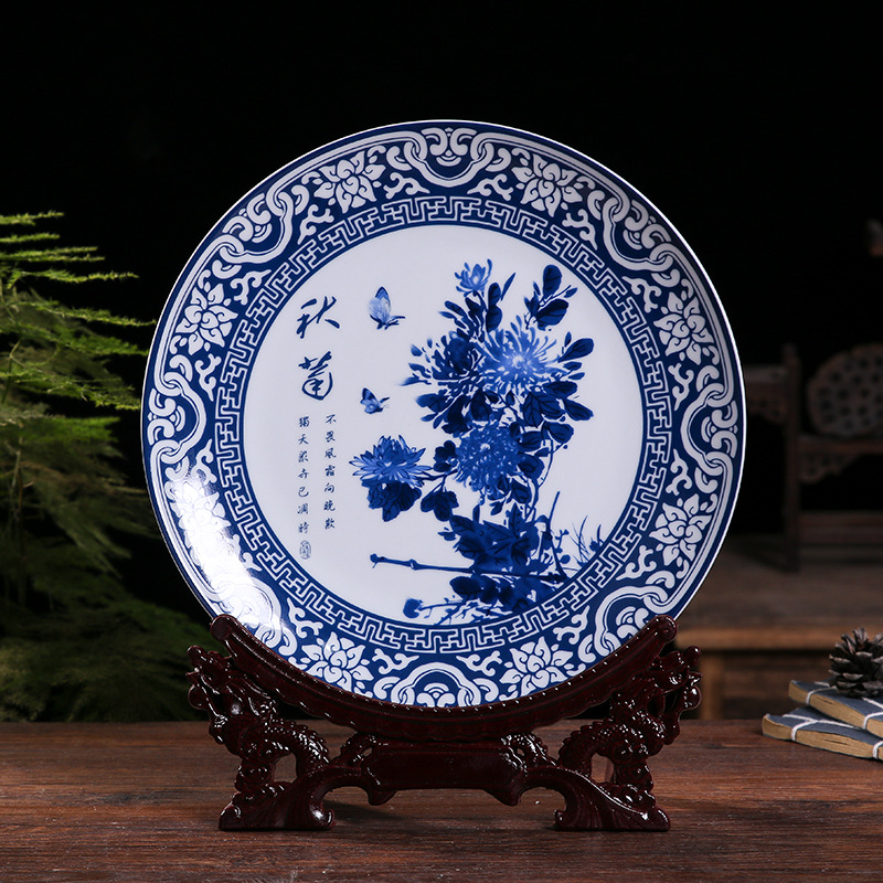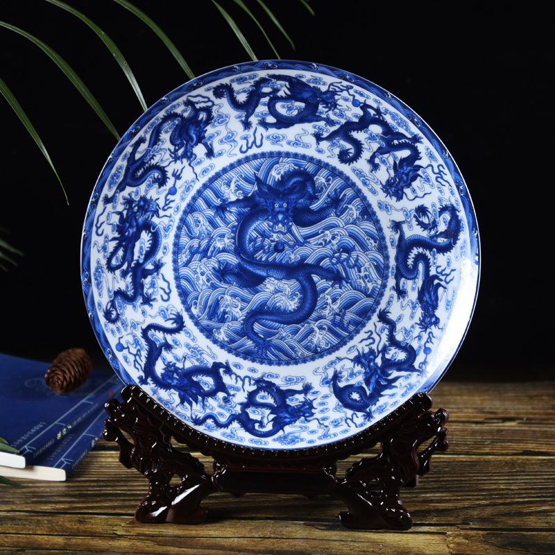 Jingdezhen 세라믹 도자기 접시 중국 가정 장식 파란색과 흰색 파스텔 접시 공예 선물 장식품 도매