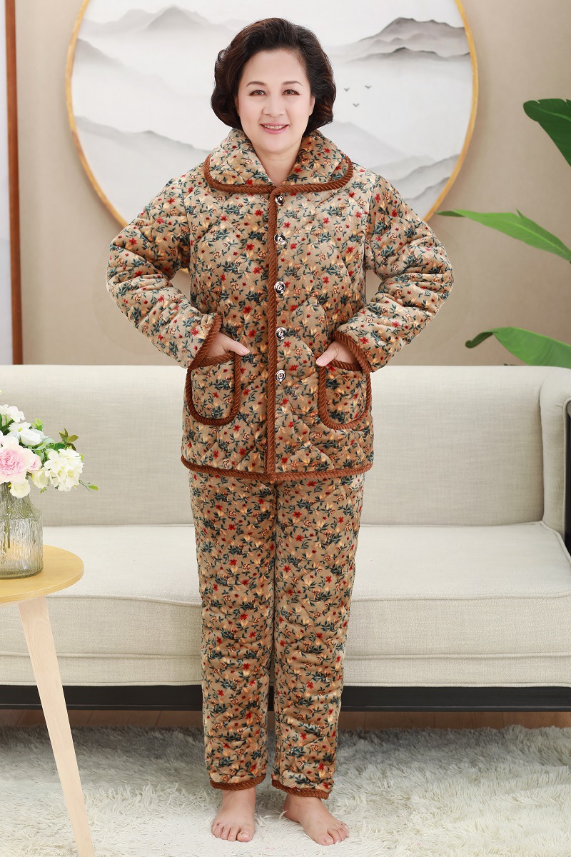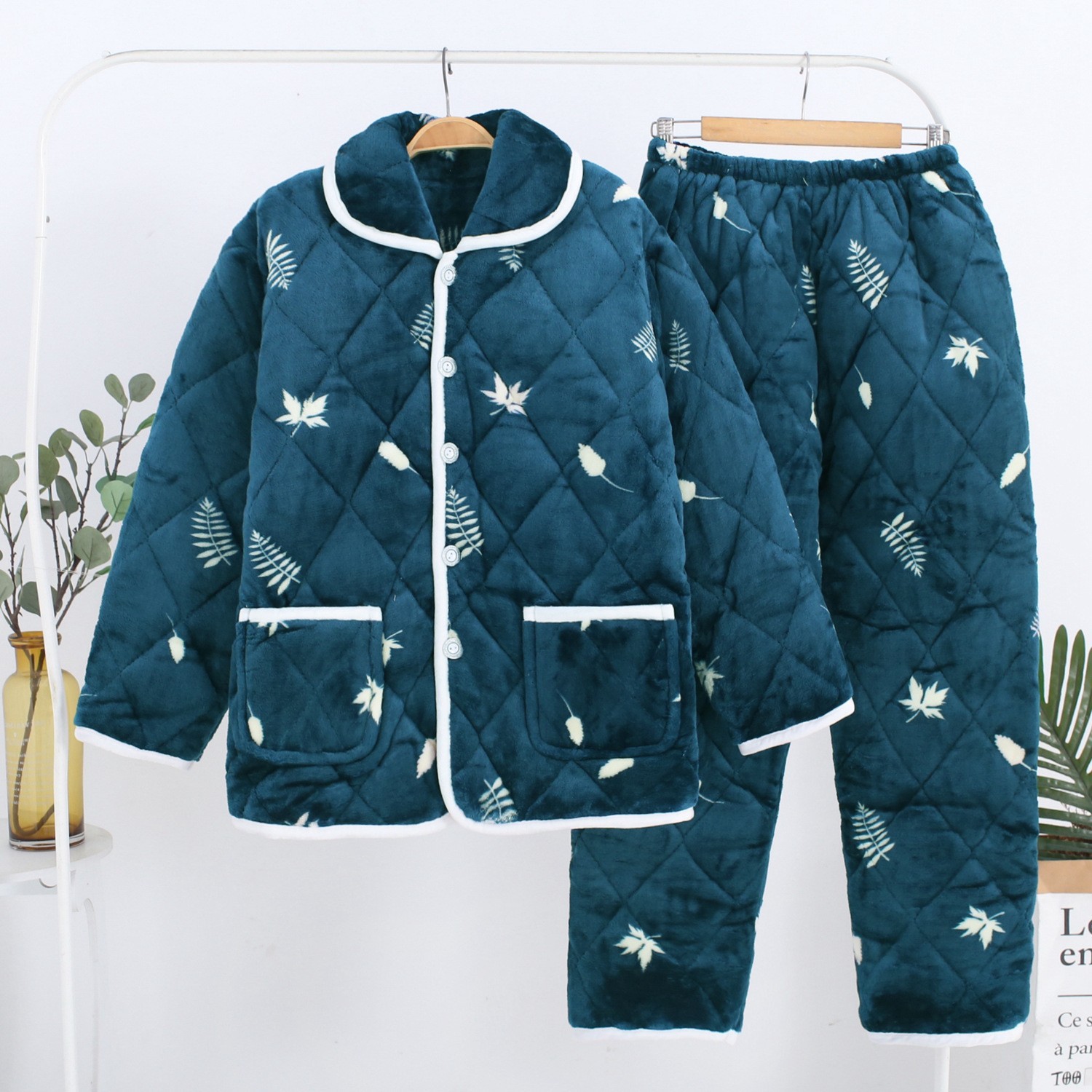 잠옷 여자의 겨울 3 단 두꺼운 누비 이불 잠옷 여자의 산호 양털 플란넬 가을과 겨울 따뜻한 겉옷 가정 옷